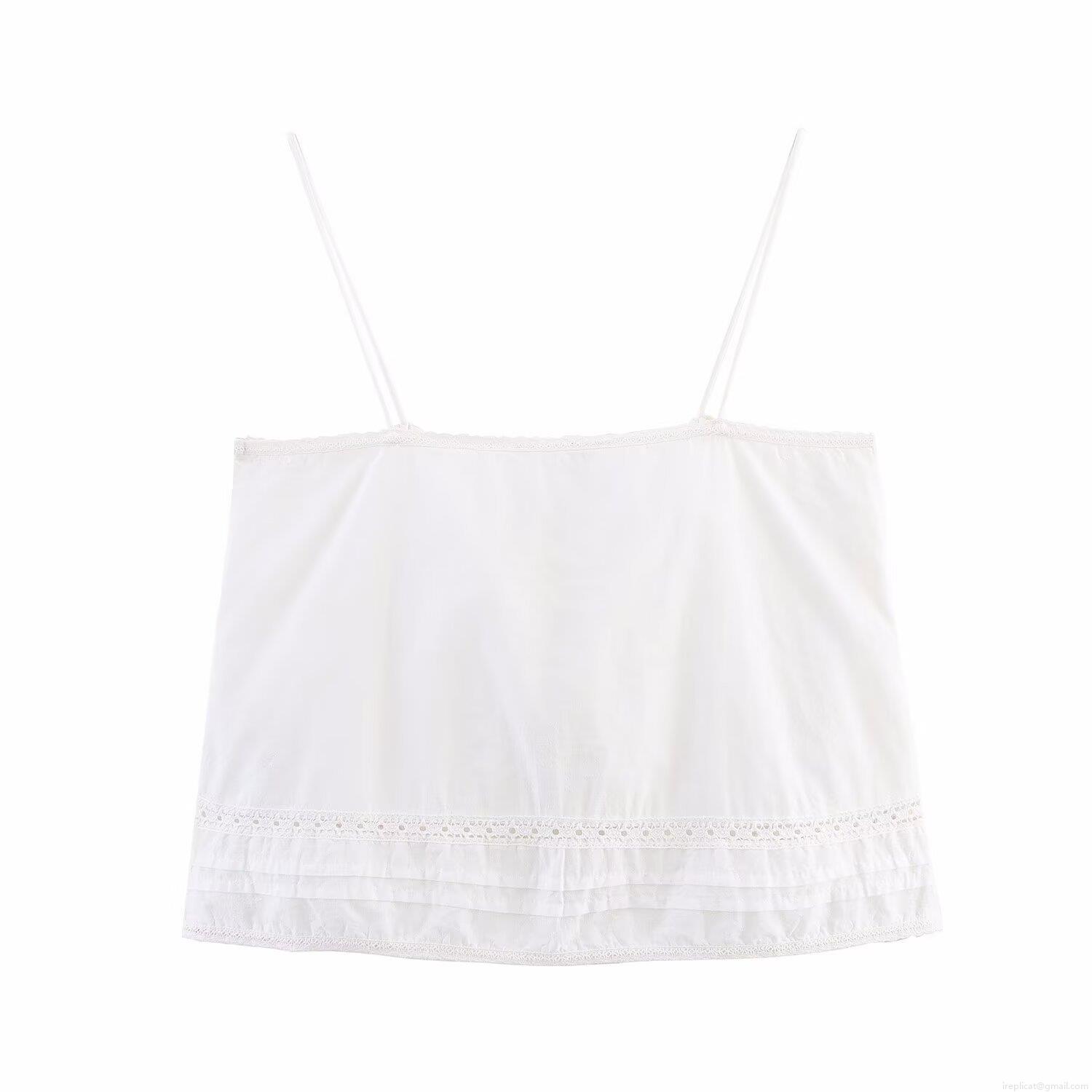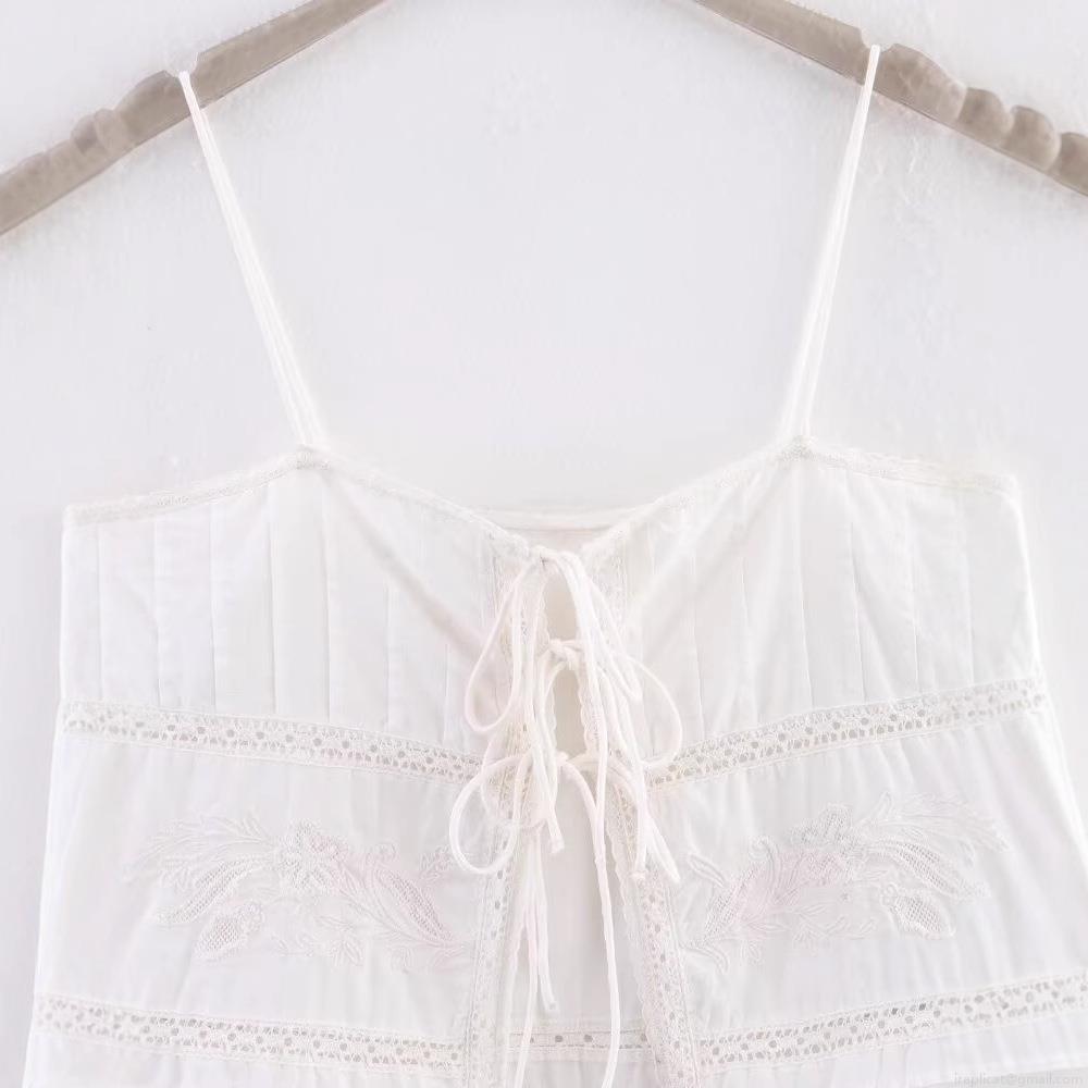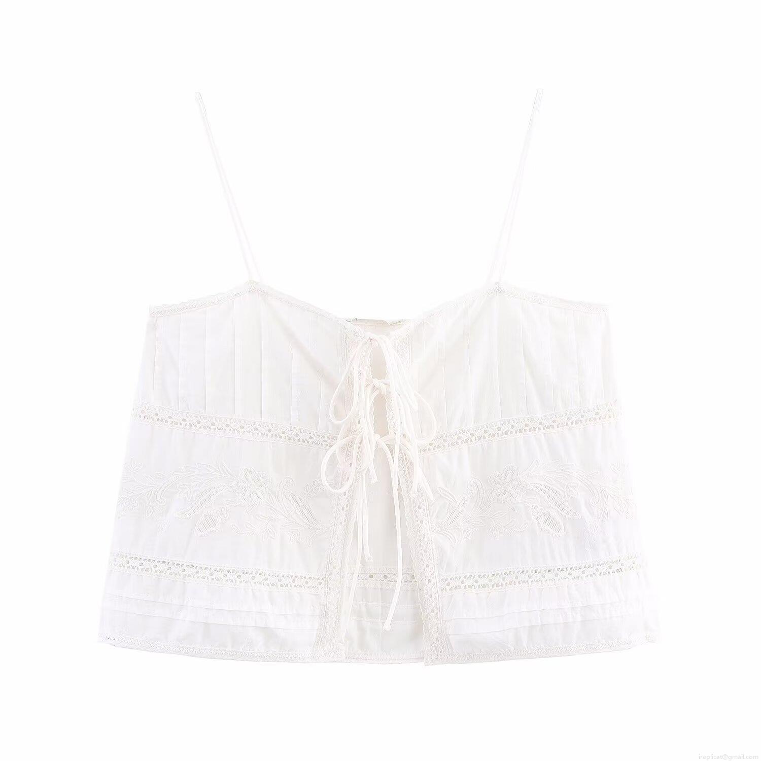 • Women Sexy White Lace Embroidery Camisole Hollow Out Cropped Tank Top With Front Tie Thin Straps Acrylic Spandex Summer Street Style Cami