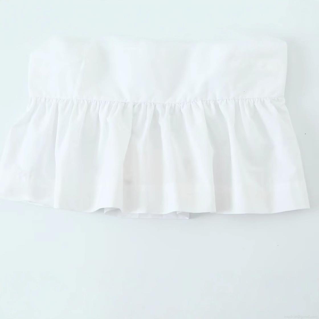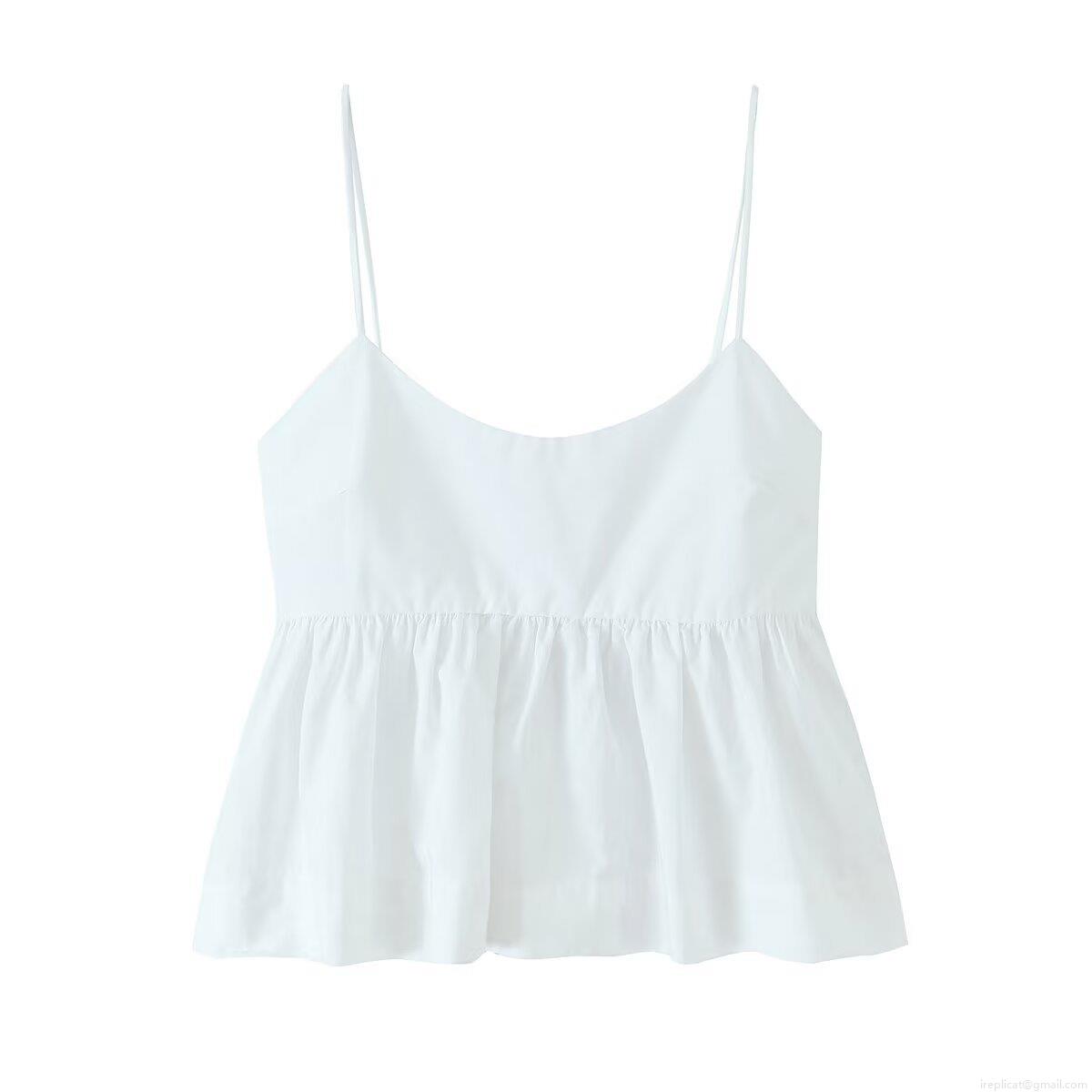 • Women Sexy White Poplin Camisole Peplum Hem Ruffle Tank Top With Back Tie Lace Up Strappy Summer Crop Top For Club Party Streetwear