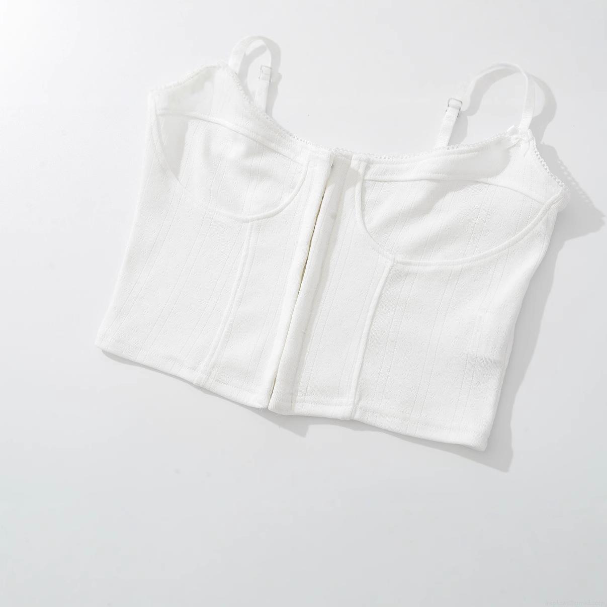 • Women Sexy White Ribbed Knit Corset Top Adjustable Spaghetti Strap Fishbone Bodycon Camisole Front Hook-and-Eye Bustier Tank Top for Club Summer Streetwear
