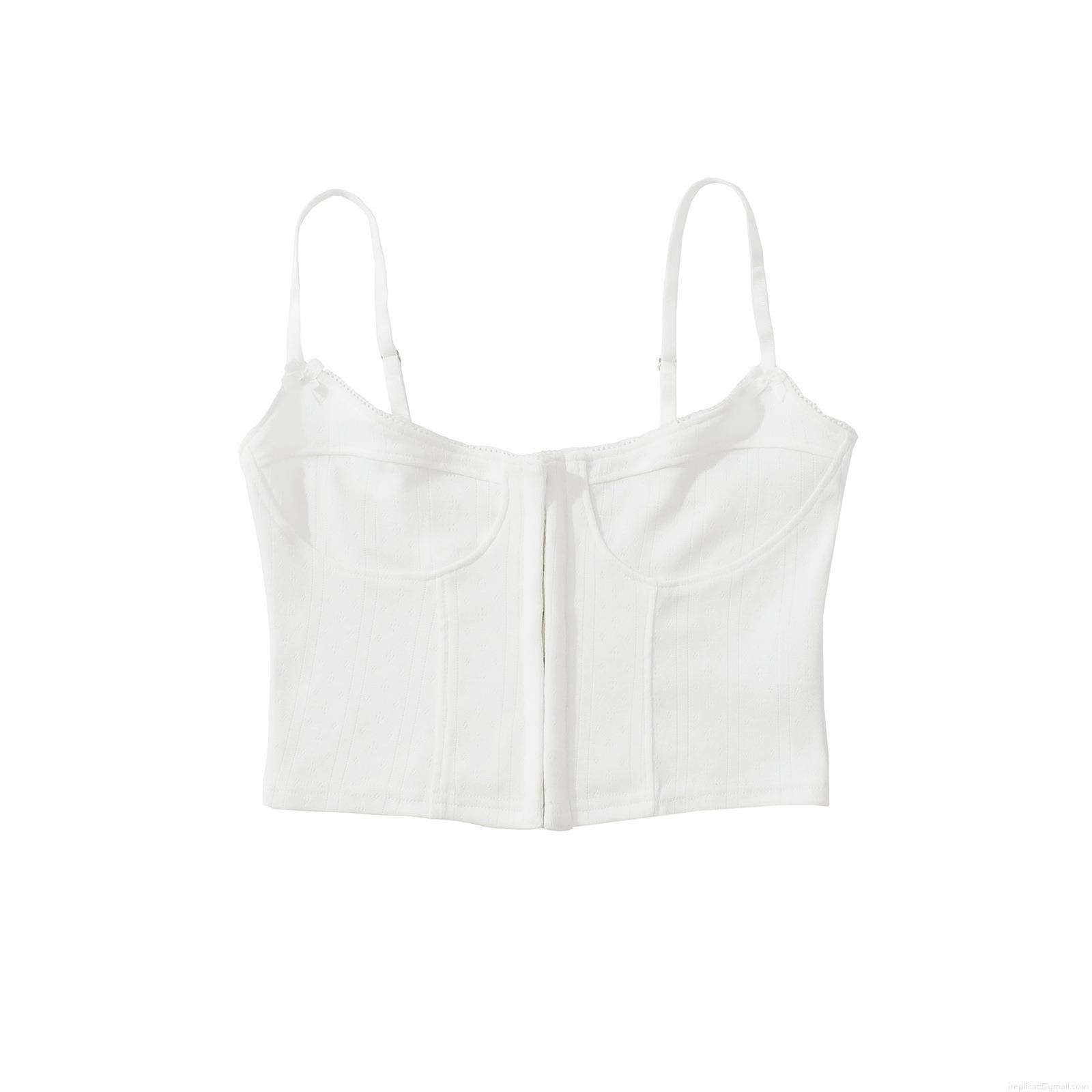 Solid Color, Ribbed Knit, Fishbone Support, Adjustable Thin Shoulder Straps, Front Buckle