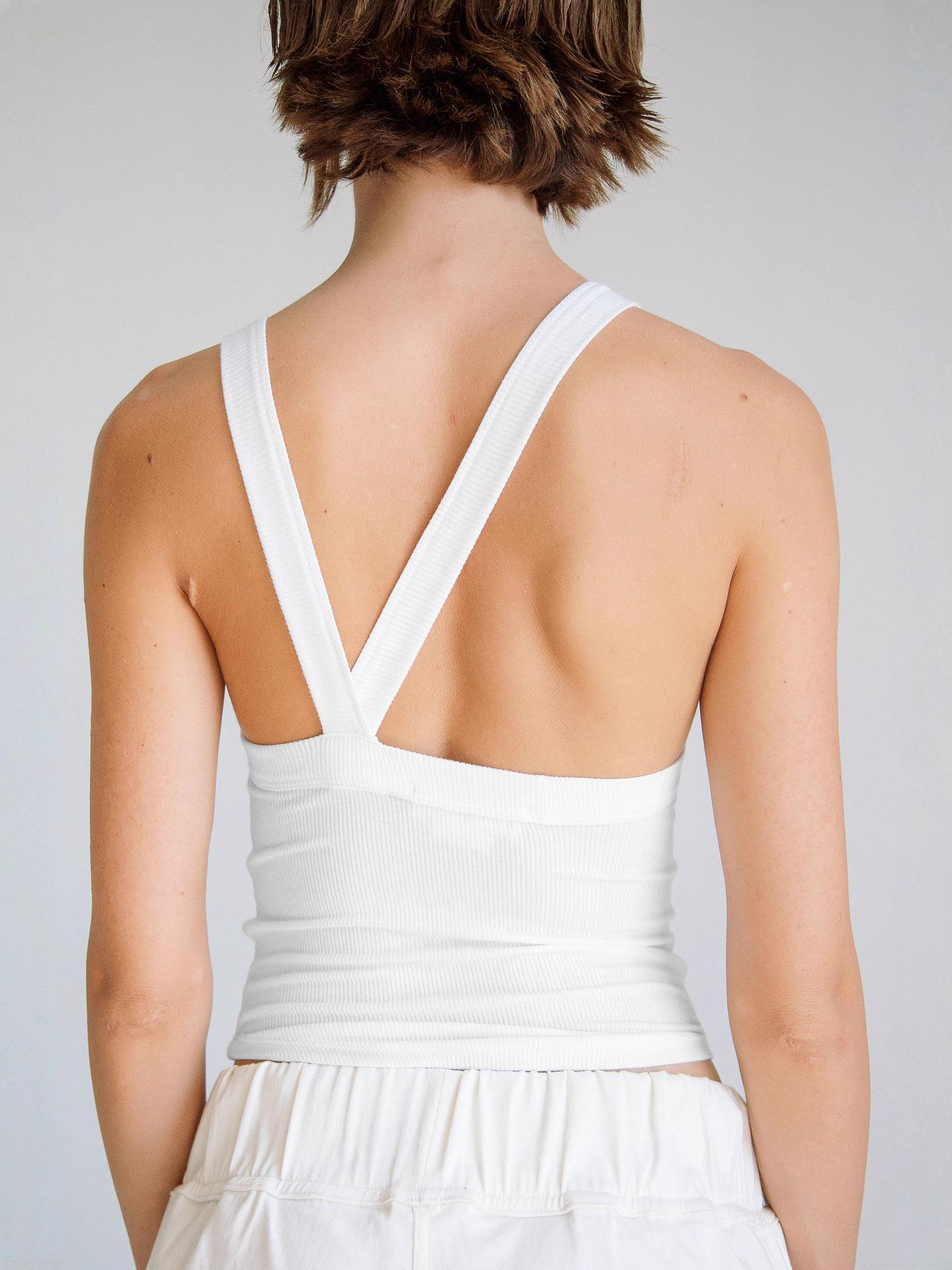 • Women Sexy Y2K Ribbed Tank Top Summer Sleeveless Backless Cross Strap Slim Fit Knitted Vest Solid Color Streetwear Ribbed Fabric Basic Cami Top For Women