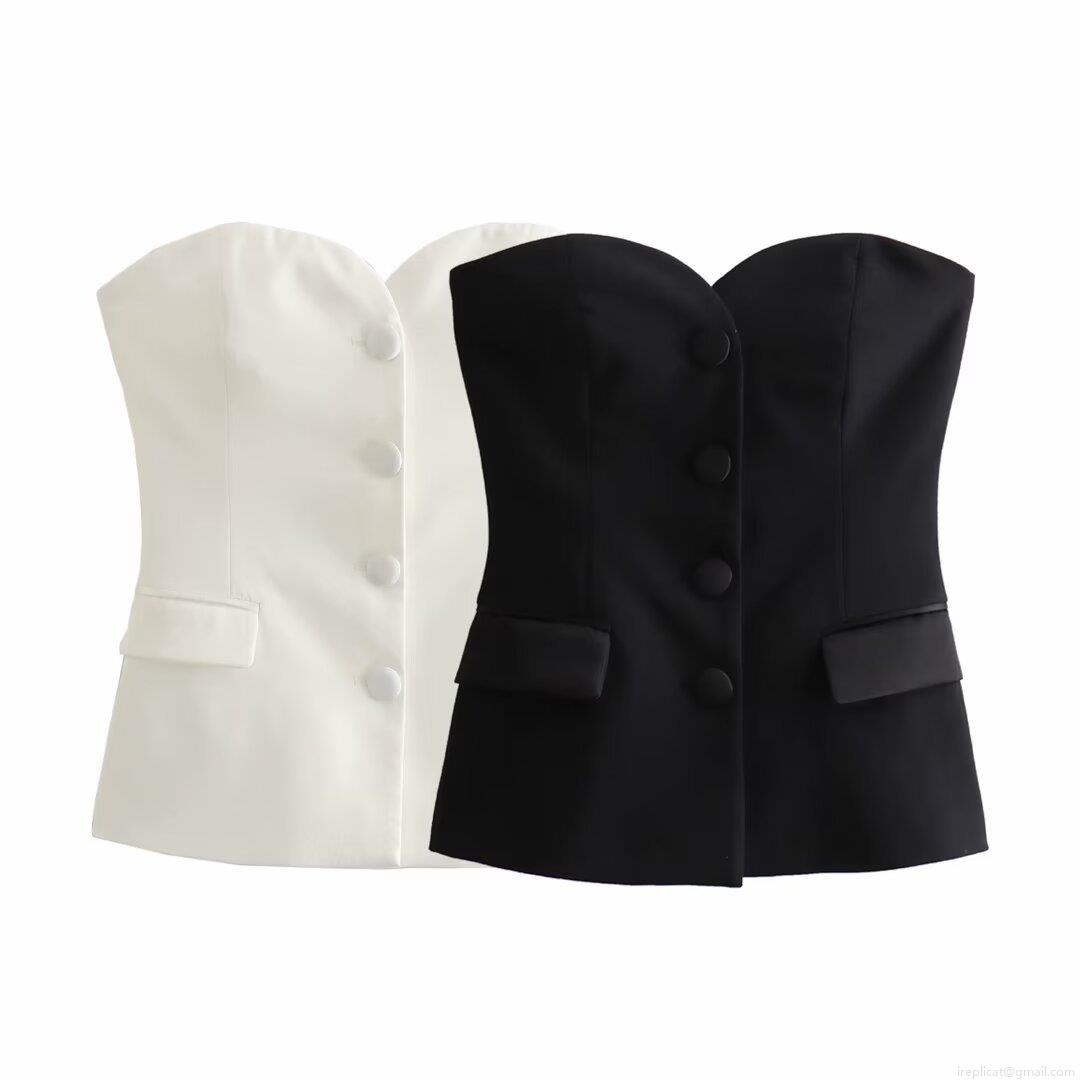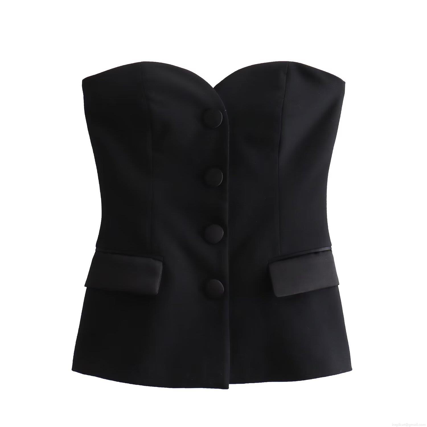 • Women Strapless Corset Top Polyester Satin Texture Single Breasted Bustier Tube Top Slim Fit Sweetheart Neckline Decorative Flap Pockets For Party Dating Daily