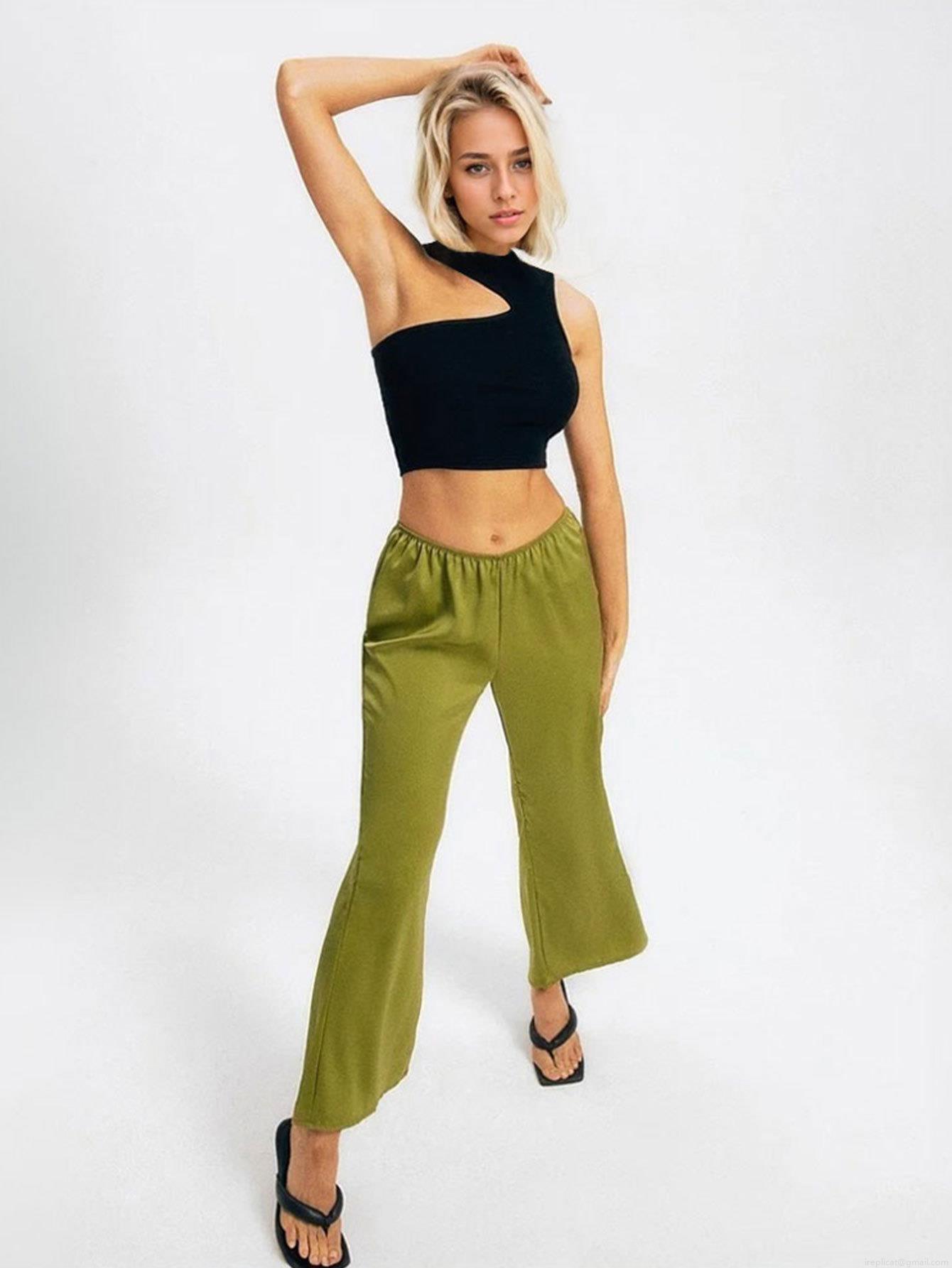 Solid Color, Navel Exposed, Sloping Shoulders, Hollow Design, Irregular Cut