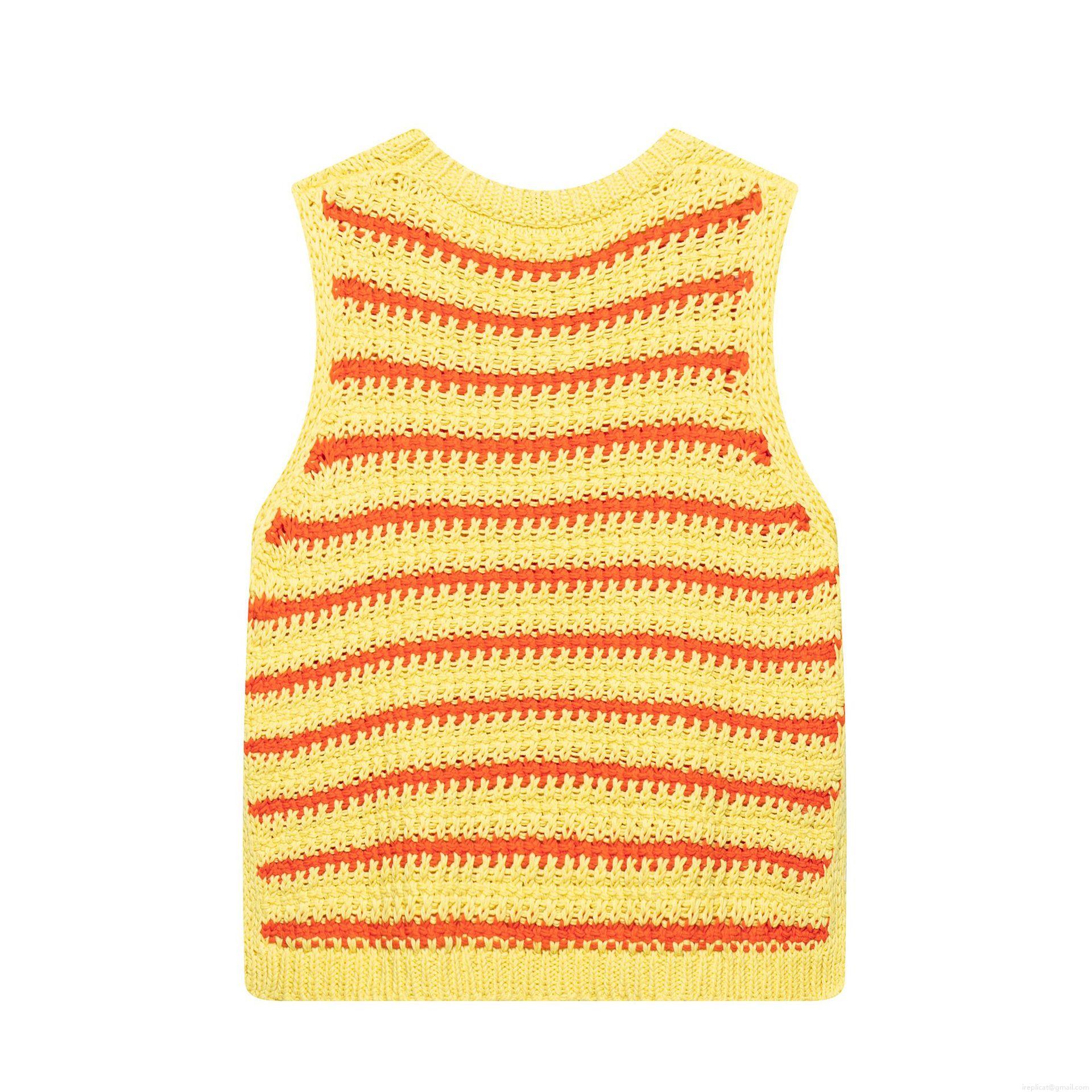 Women Stripe Knit Tank Top Polyester Sleeveless Round Neck Sweater Vest With Side Slit Casual Sweet Summer Knitwear For Women