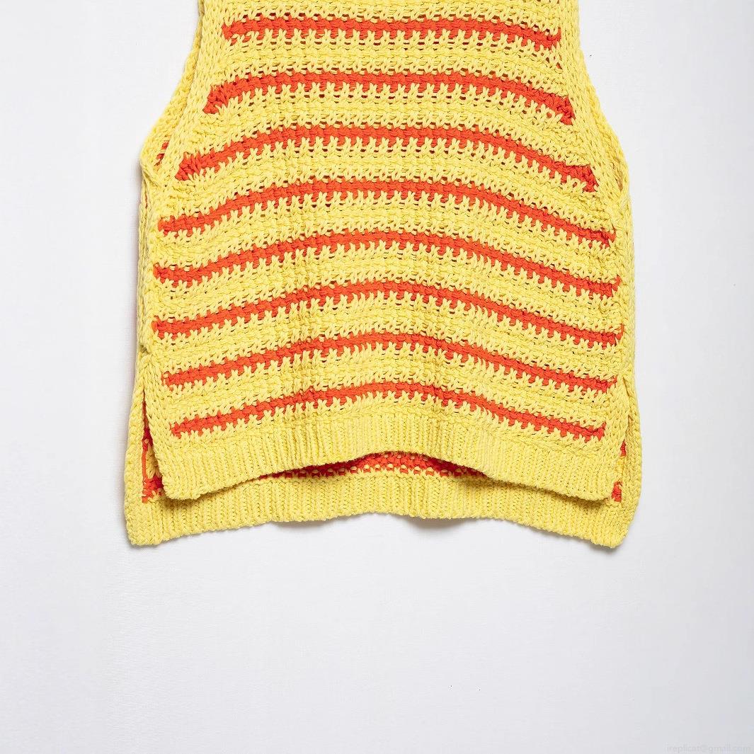 • Women Stripe Knit Tank Top Polyester Sleeveless Round Neck Sweater Vest With Side Slit Casual Sweet Summer Knitwear For Women