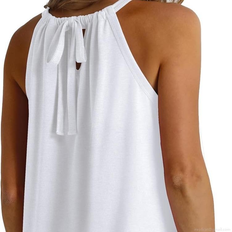 • Women Summer Halter Neck Tank Top Cotton Blend Sleeveless Pleated Drawstring Vest Casual Loose Solid Color Sleeveless Top For Women