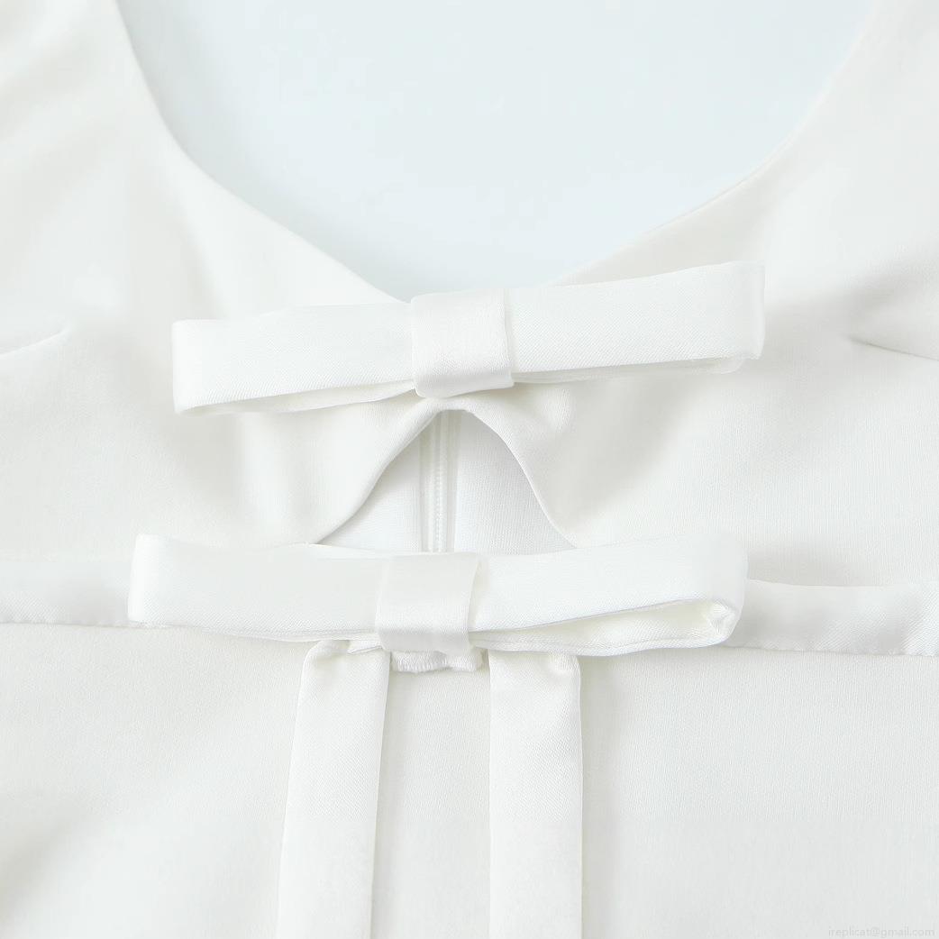• Women Summer Sexy Bowknot Hollow Out Tank Top Elegant Sleeveless Camisole With Back Invisible Zipper And Tie Strap European Streetwear White Crop Top For Party Vacation