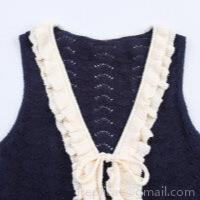 • Women Sweet Knitted Vest Top V Neck Tie Front Hollow Out Sleeveless Knitwear With Lace Ruffle Decor French Vintage Deep Blue Slim Fit Camisole For Daily Dating