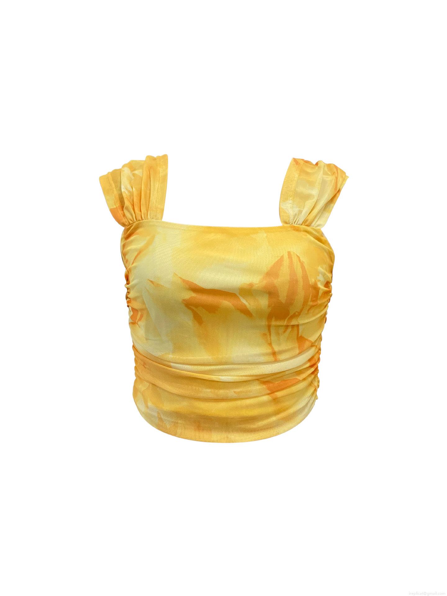 • Women Tie Dye Ruched Crop Tank Top Square Neck Sleeveless Slim Fit Summer Beach Vest Top 94% Polyester 6% Spandex Trendy Y2K Sweet Style Cami Top