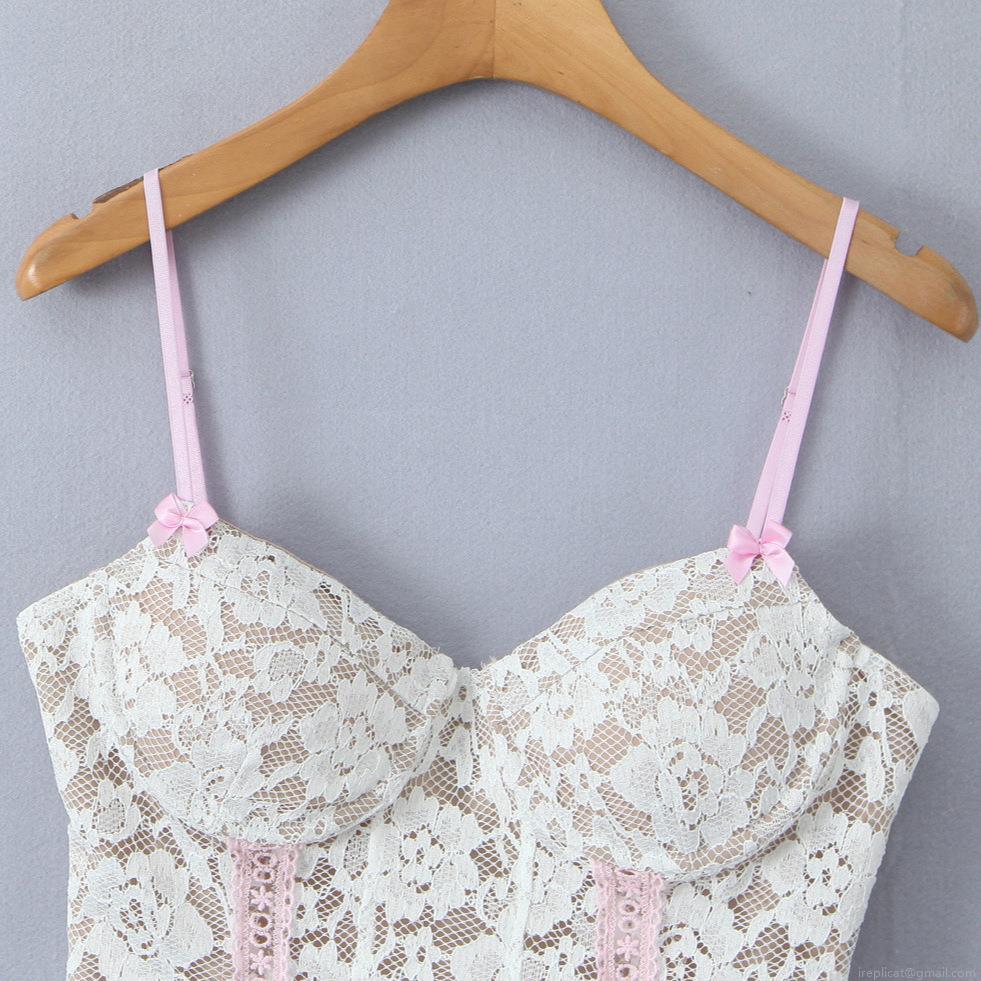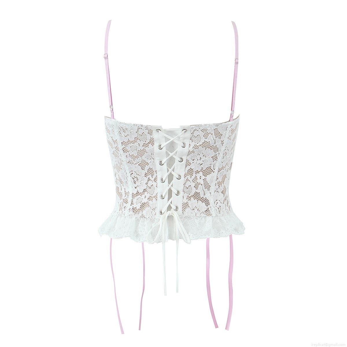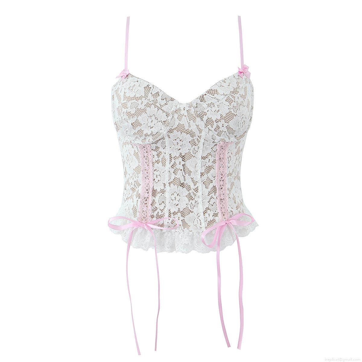 • Women White Lace Cami Top With Pink Ribbon Bow Adjustable Spaghetti Straps Slim Fit Bustier Corset Tank Top For Summer Party Clubwear Streetwear Y2K Chic Style