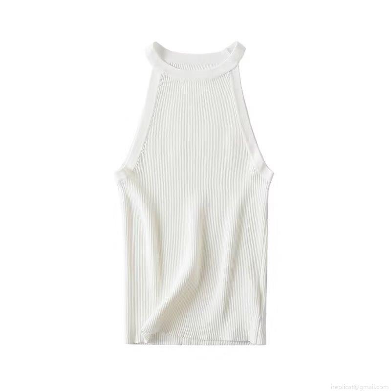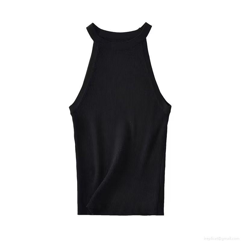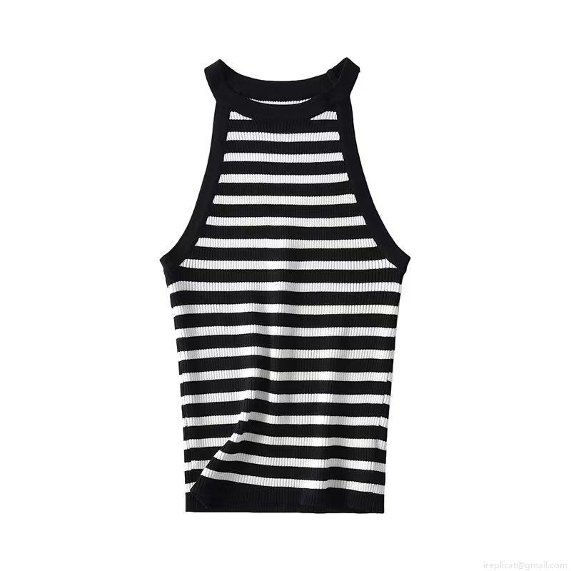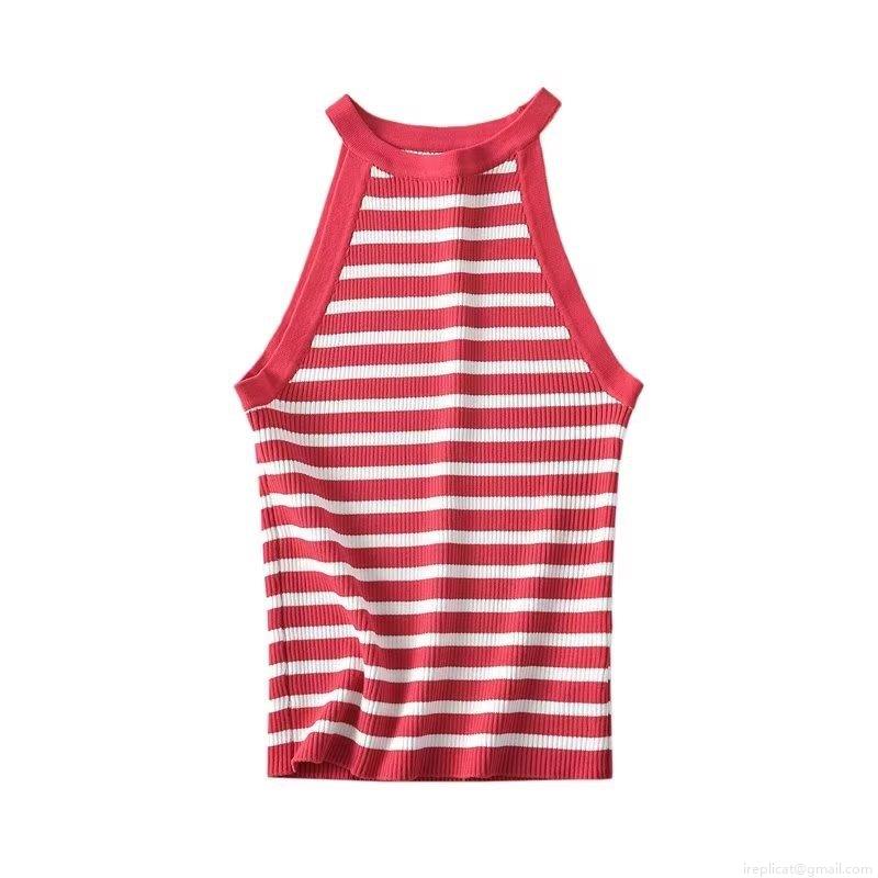 • Women Y2K Ribbed Knit Halter Tank Top Sexy Slim Fit Striped Contrast Color Sleeveless Crop Top Summer Streetwear Camisole