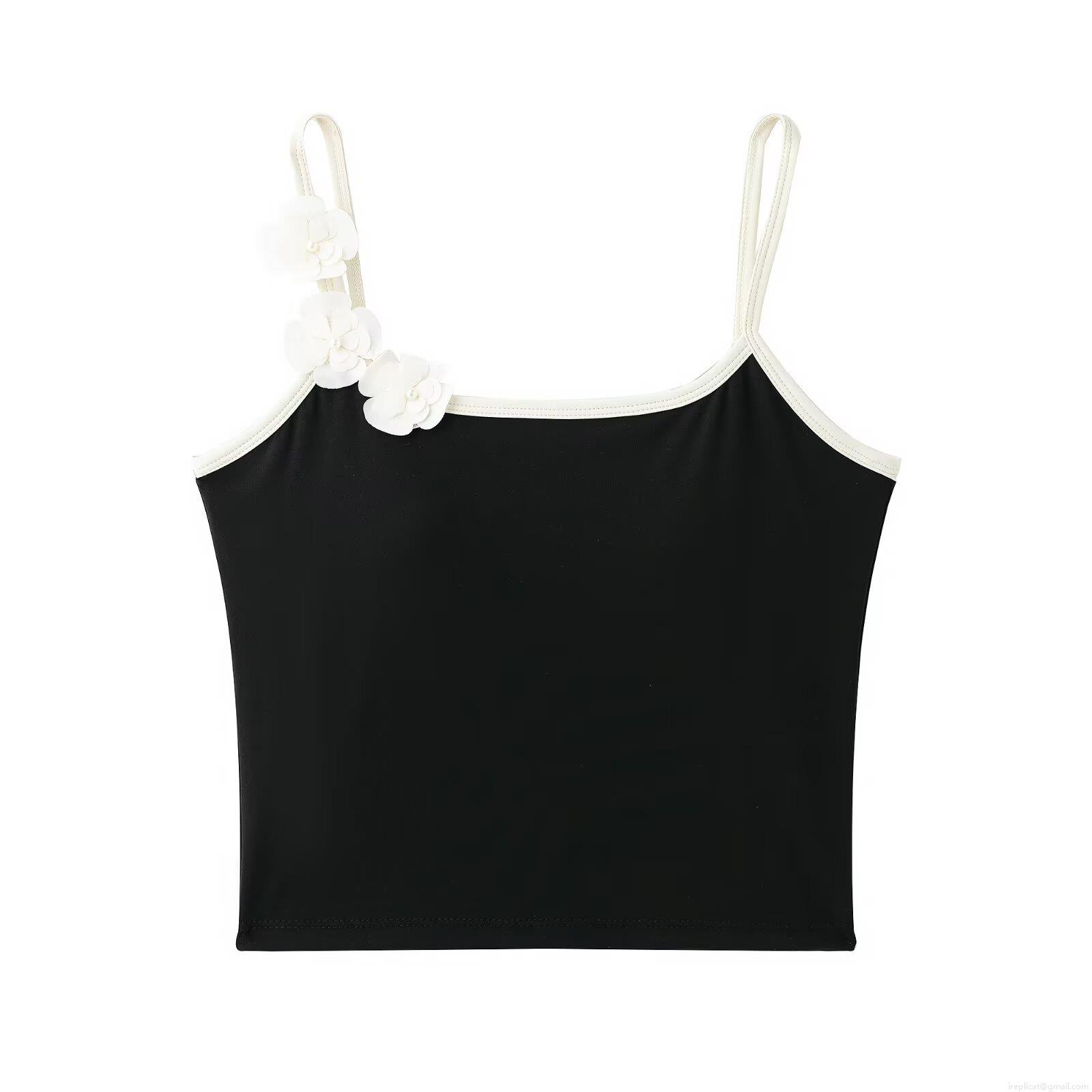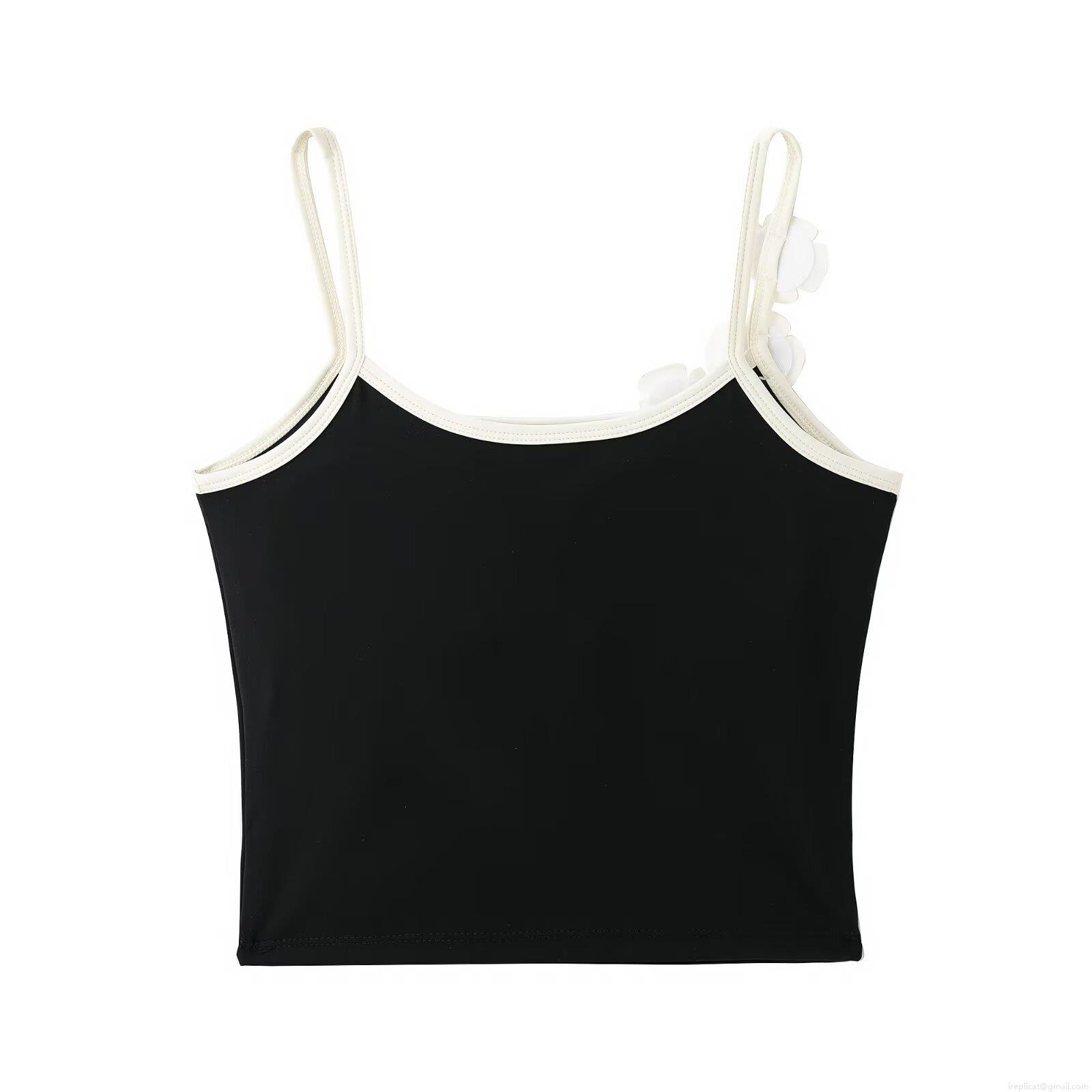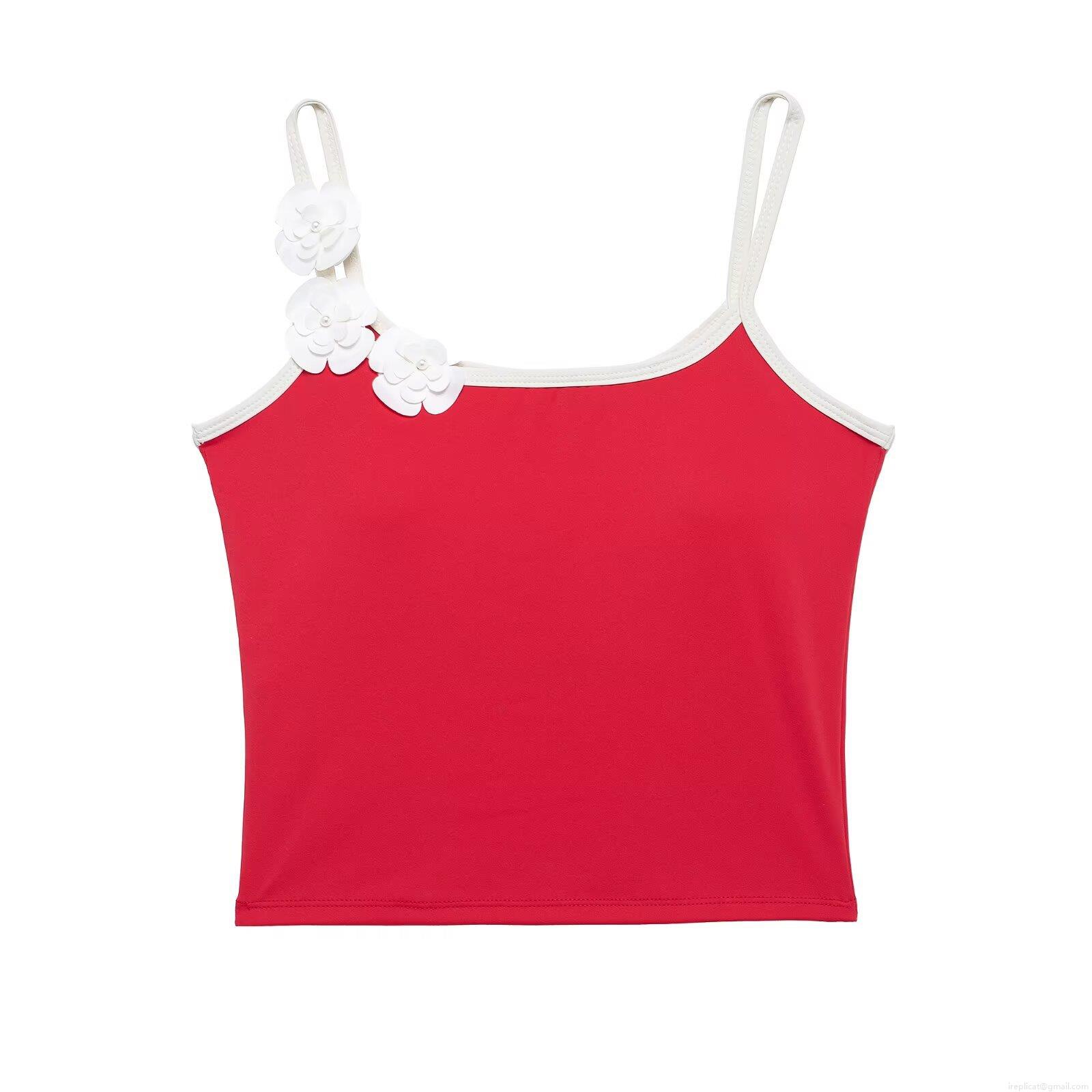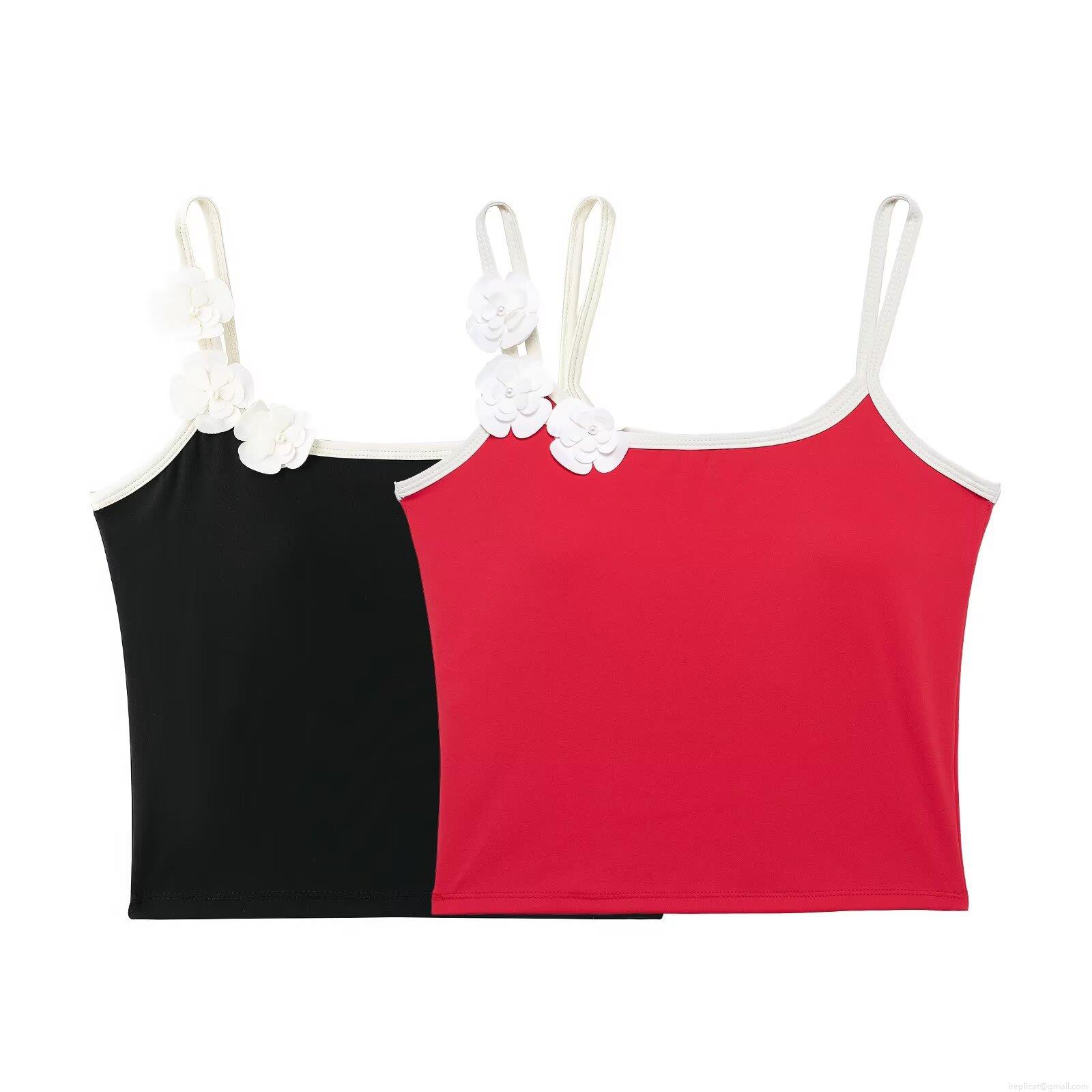 • Women's 3D Floral Decoration Camisole Built-in Bra Padded Crop Top Contrast Piping Summer Streetwear Slim Fit Tank Top Polyester Blend Fashion Top