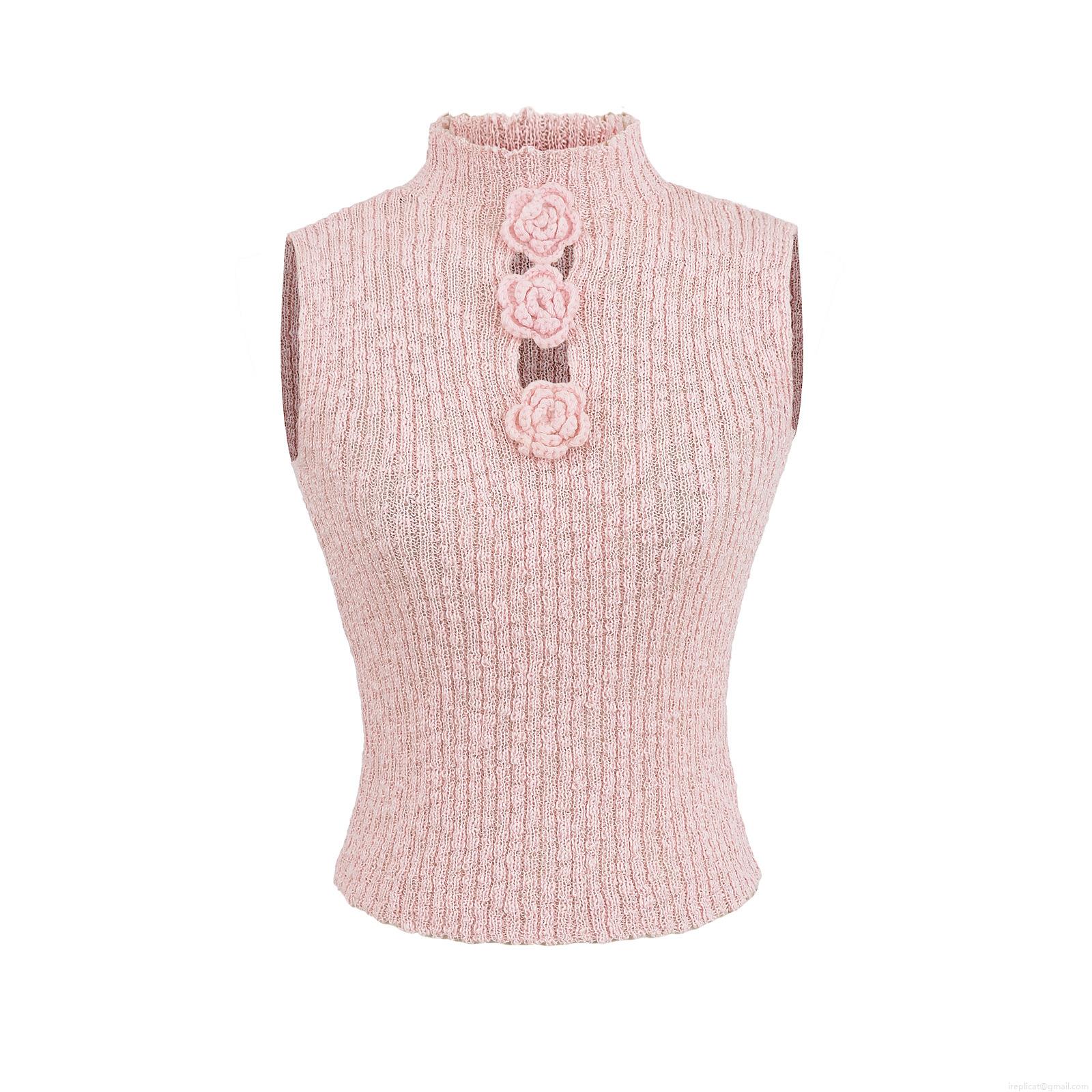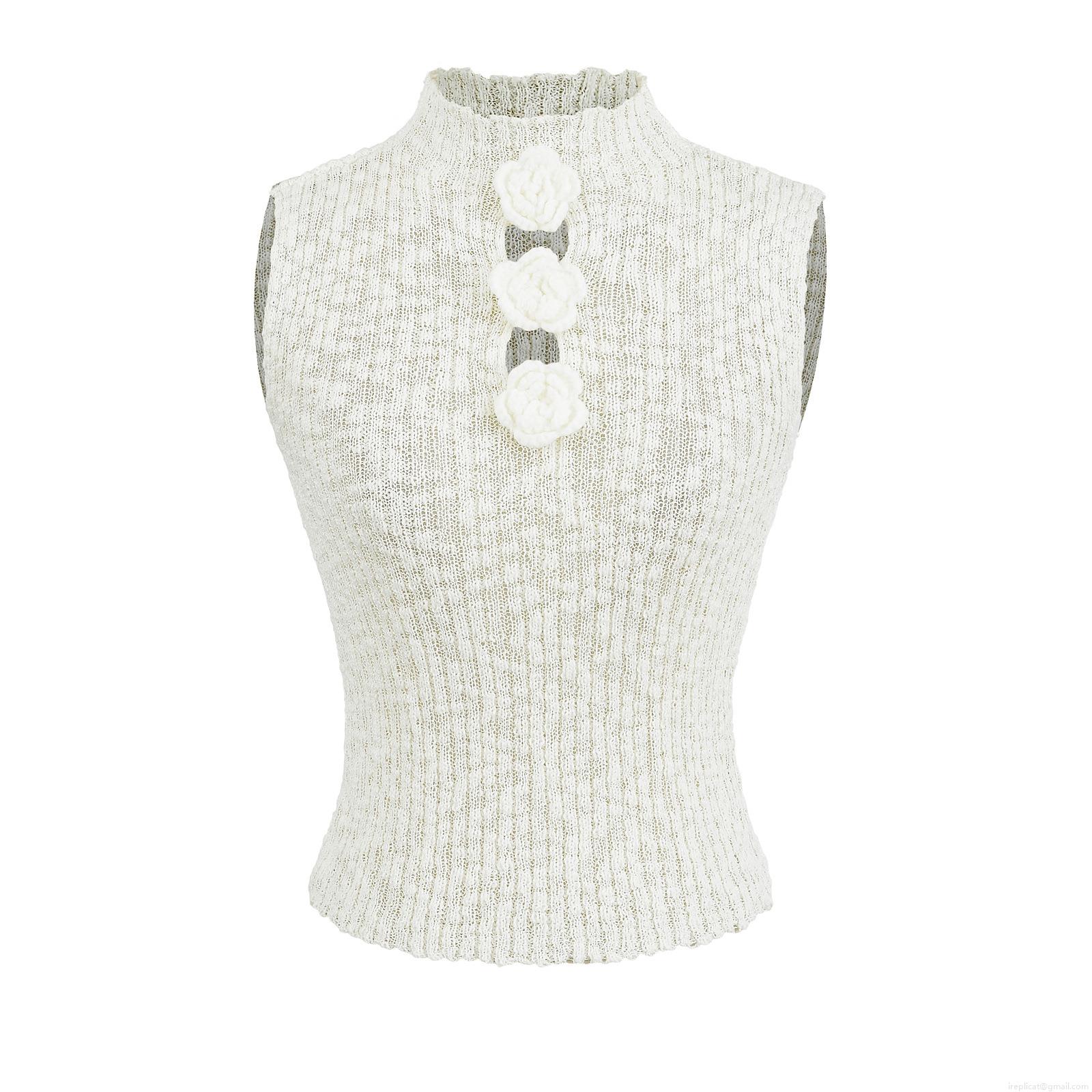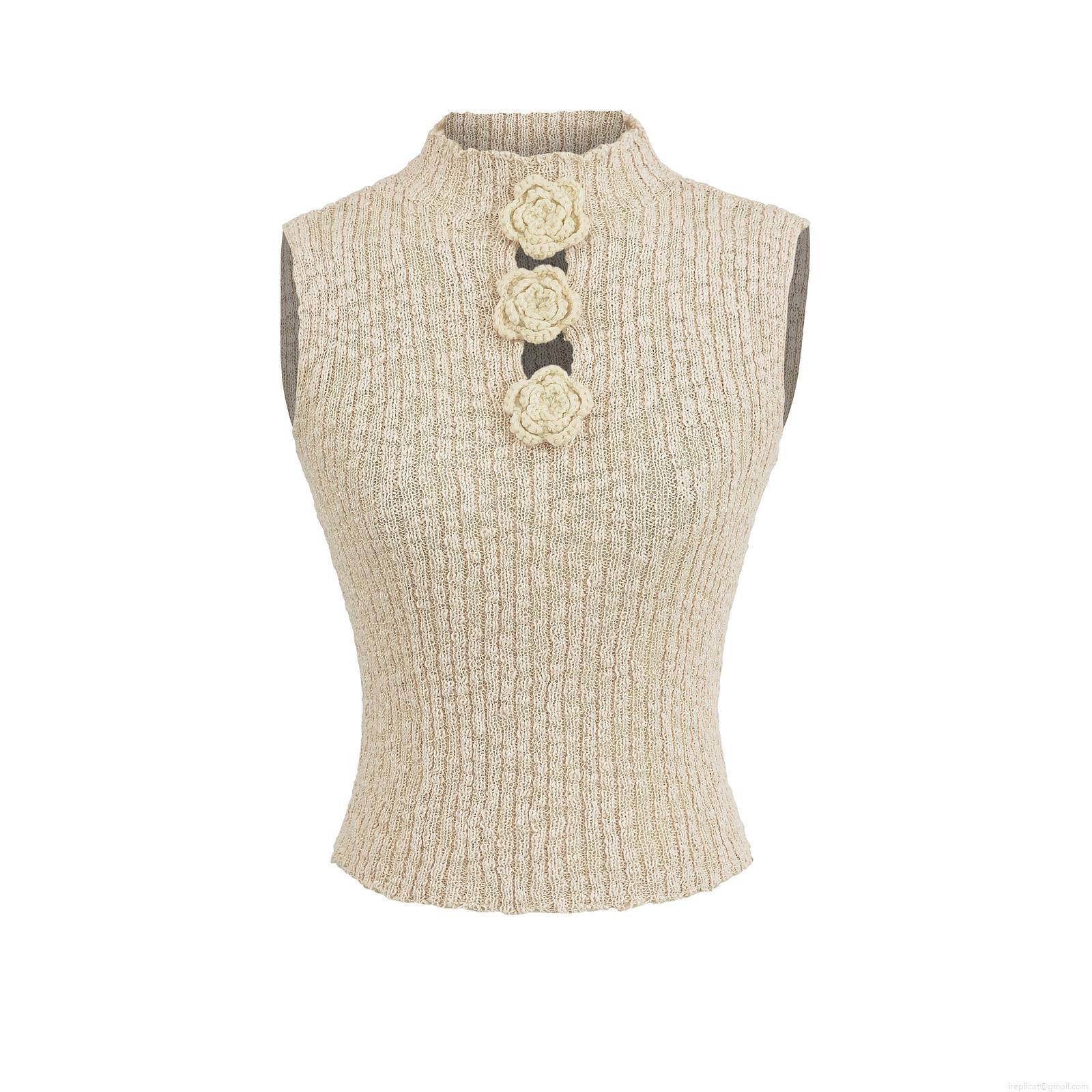 • Women's 3D Flower Knitted Slim Fit Tank Top Sleeveless High Neck Crochet Vest For Party Dating Elegant Sweet Ribbed Summer Tops