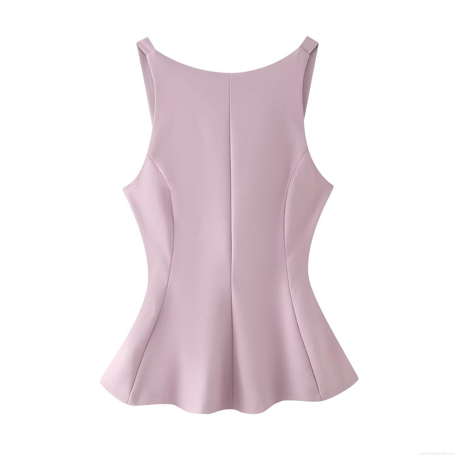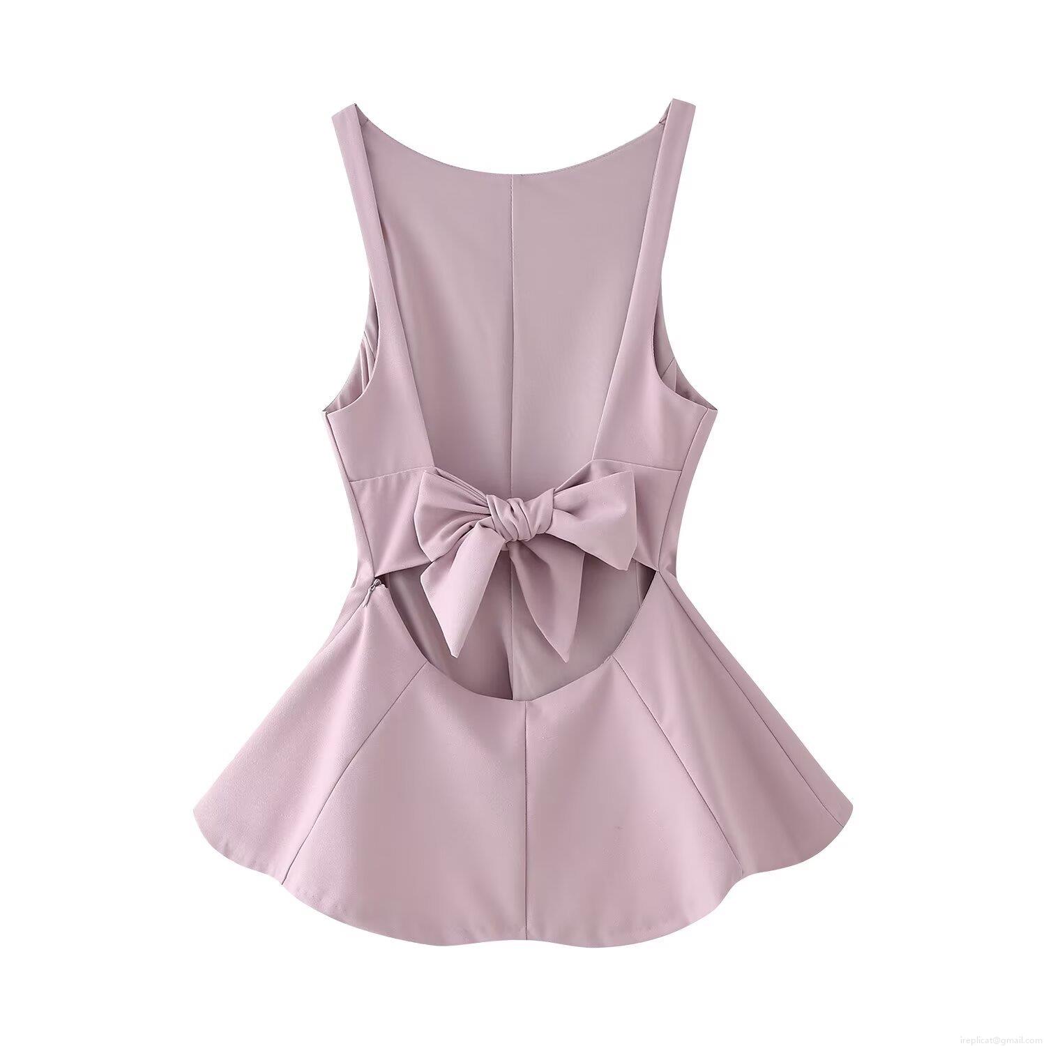 • Women's Backless Sleeveless Peplum Top With Large Bow Back Decoration Sexy Slim Fit Streetwear Party Blouse Solid Color Polyester Vest