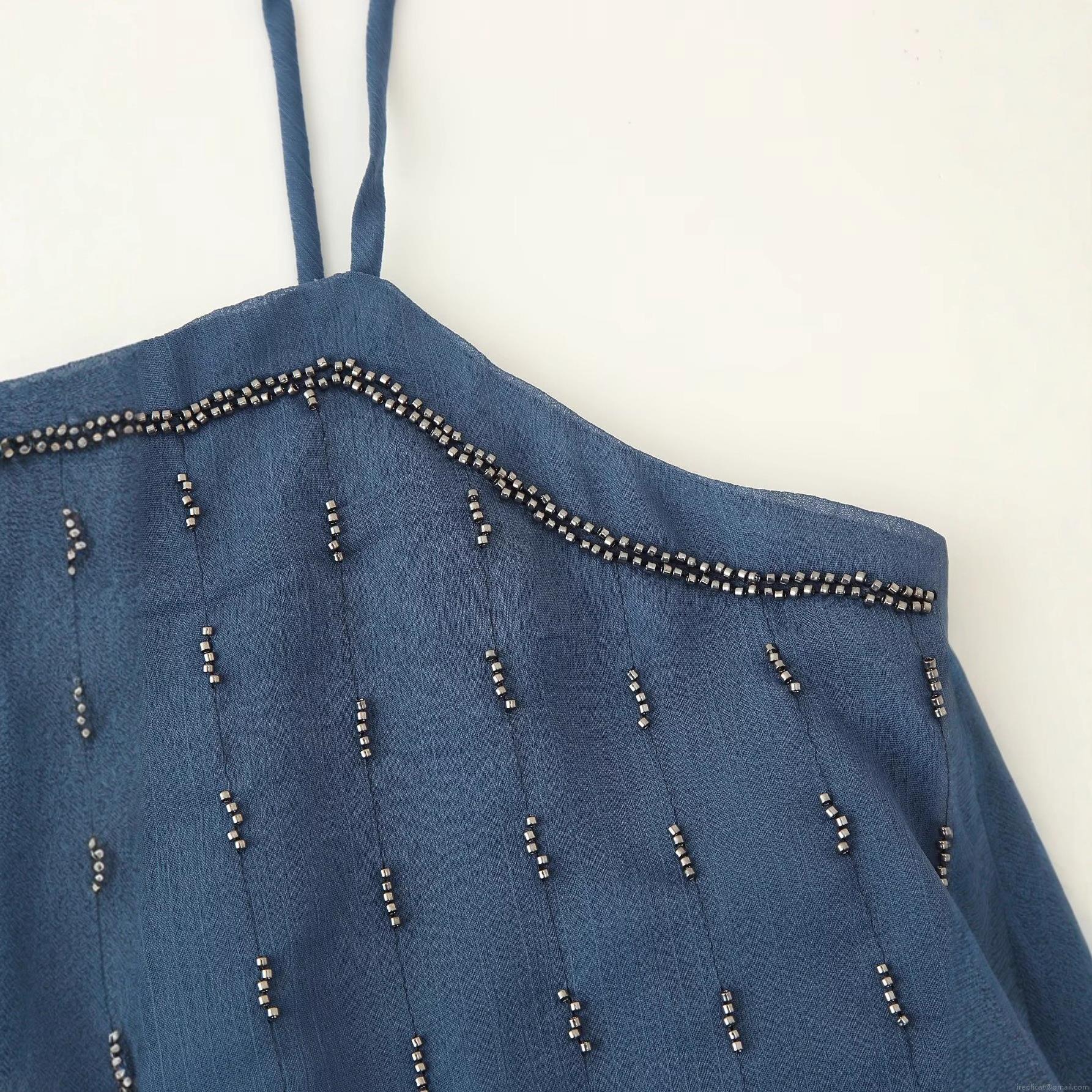 • Women's Beaded Cami Top Sexy Chiffon Spaghetti Strap Bandeau Vest For Party Club Streetwear Summer Sleeveless Polyester Top