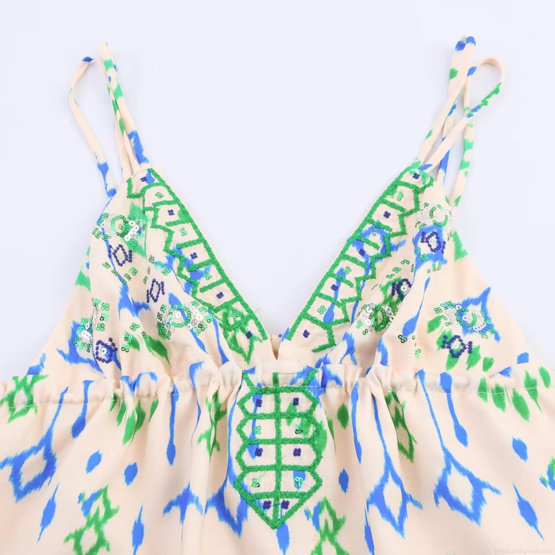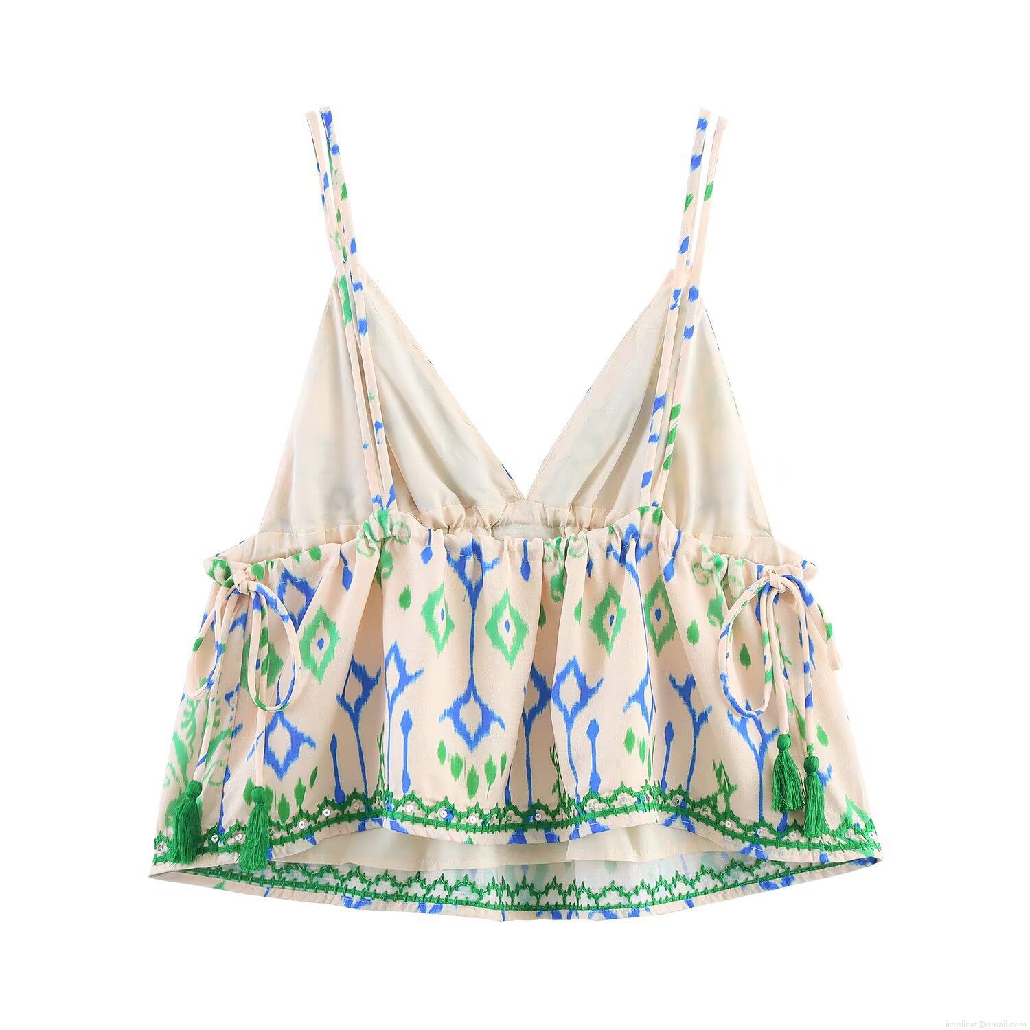 • Women's Bohemian Ethnic V-Neck Cami Top With Sequins Embroidery Tassel Summer Holiday Sleeveless Polyester Acrylic Tank Top For Women