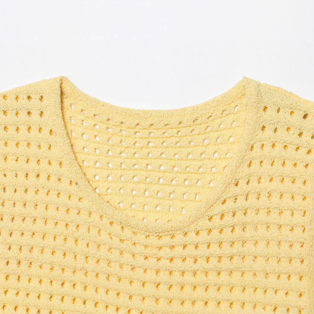 • Women's Boho Crochet Tassel Knit Tank Top Hollow Out Sleeveless Round Neck Fringe Hem Polyester Knitwear Top Streetwear Summer Vest For Women