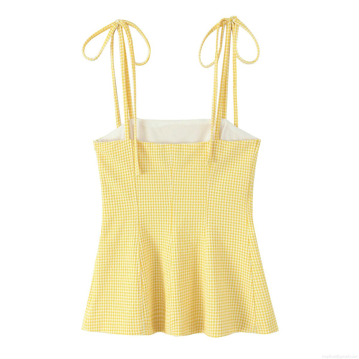 • Women's Bow Tie Shoulder Strap Camisole Top Polyester Slim Fit Peplum Gingham Crop Tank Top for Summer Casual Vacation Dating
