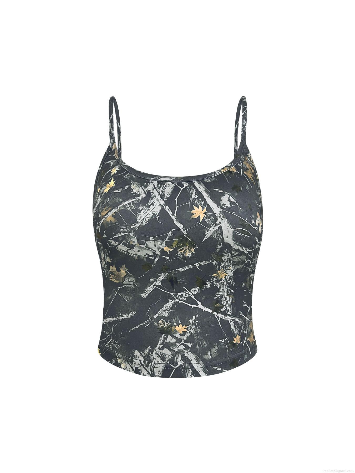 Camouflage, Camouflage Print, Thin Shoulder Straps, Cropped Top, Tree Leaves