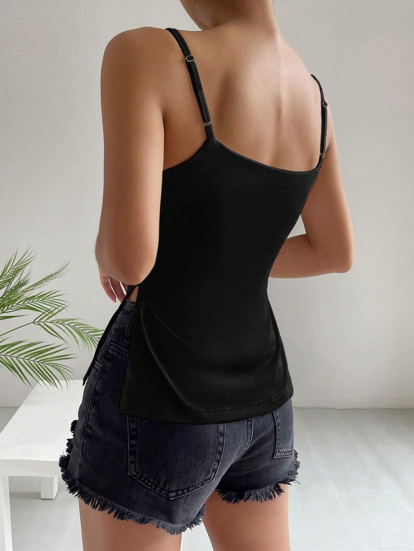 • Women's Casual Camisole Top 95% Polyester 5% Elastane Square Neck Sleeveless Slim Fit Summer Cami Tank Top For Daily Dating Minimalist Style