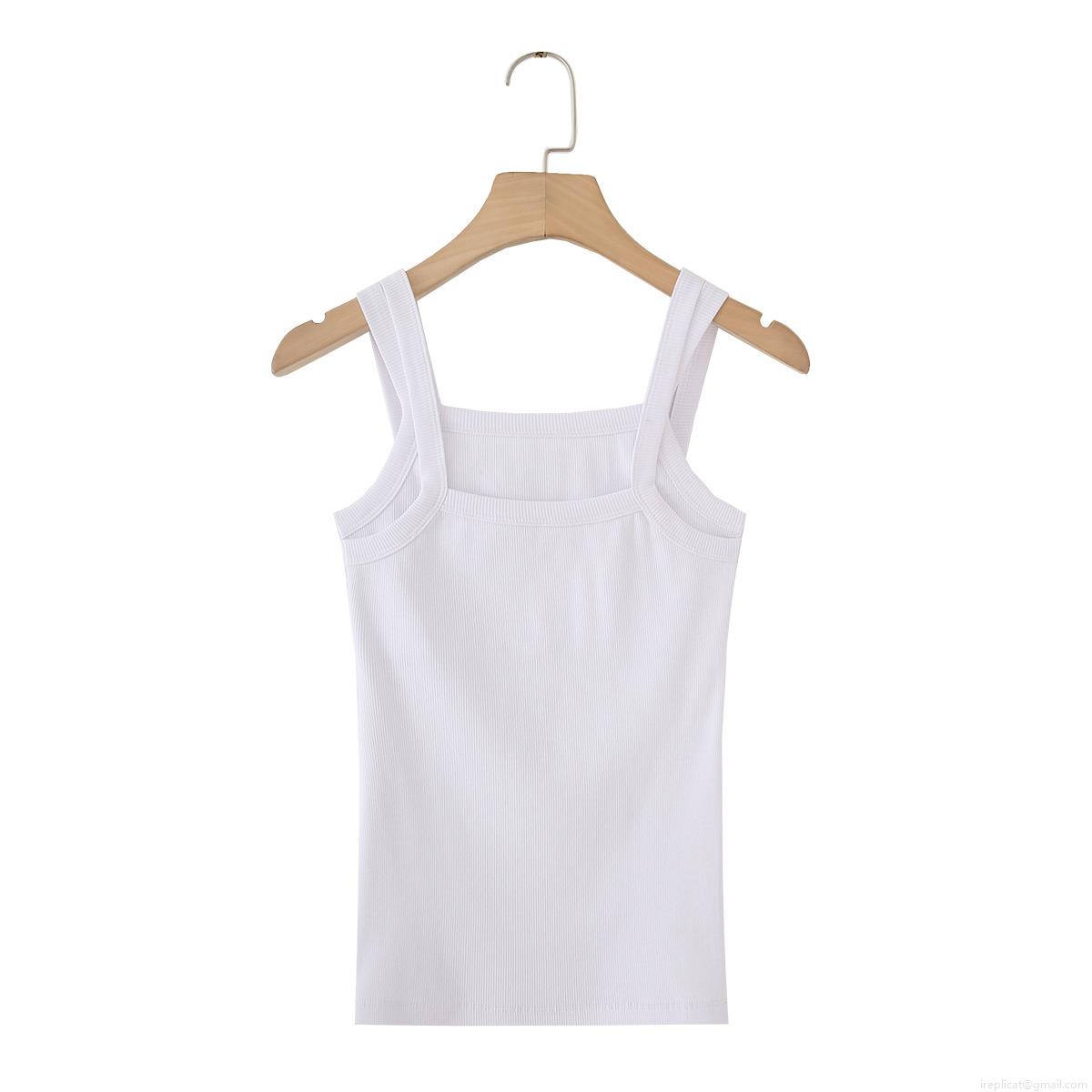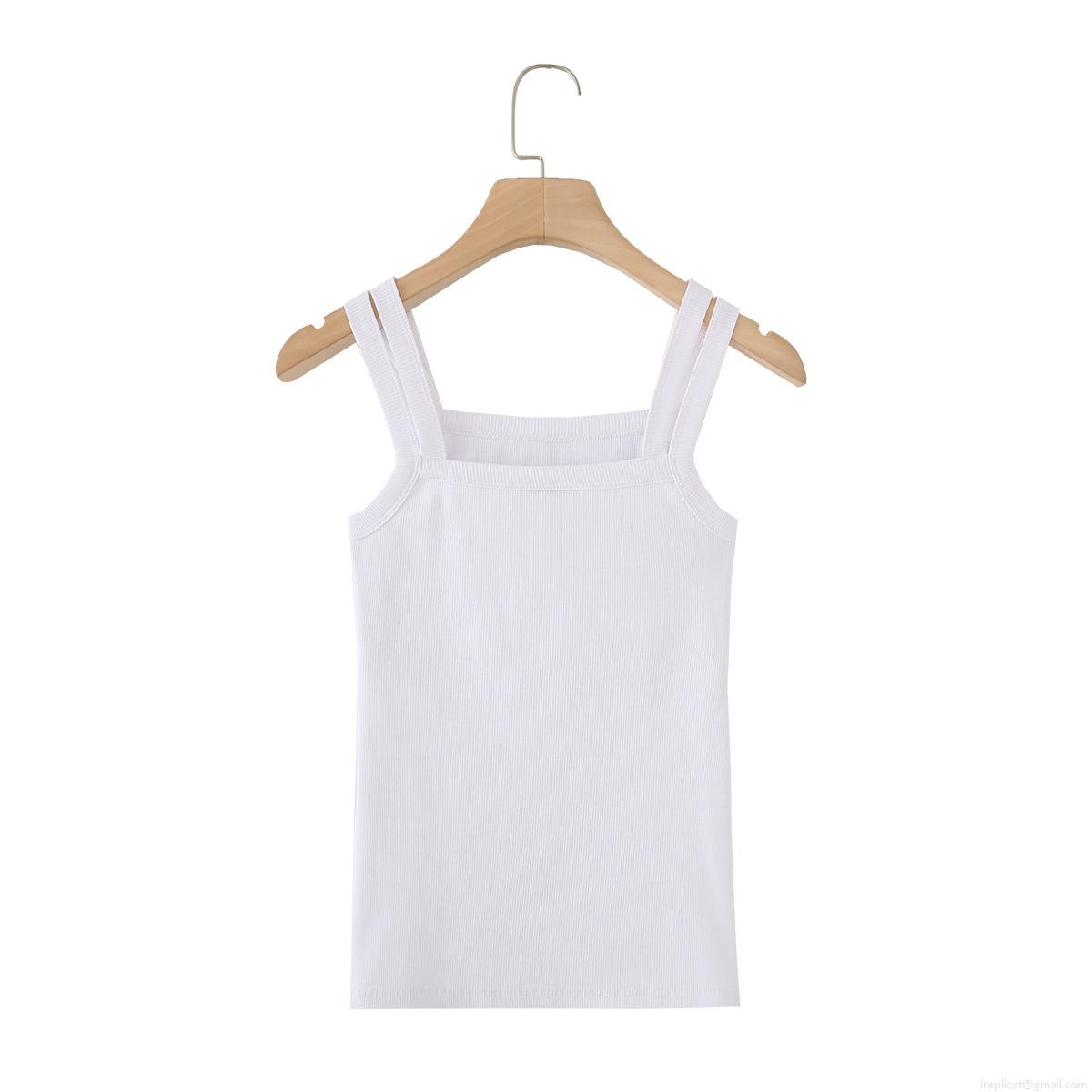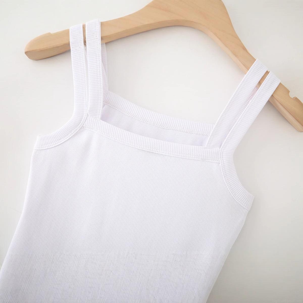 • Women's Casual Cotton Ribbed Tank Top Square Neck Wide Shoulder Straps Solid White Summer Stretchy Sleeveless Camisole Vest Top For Women