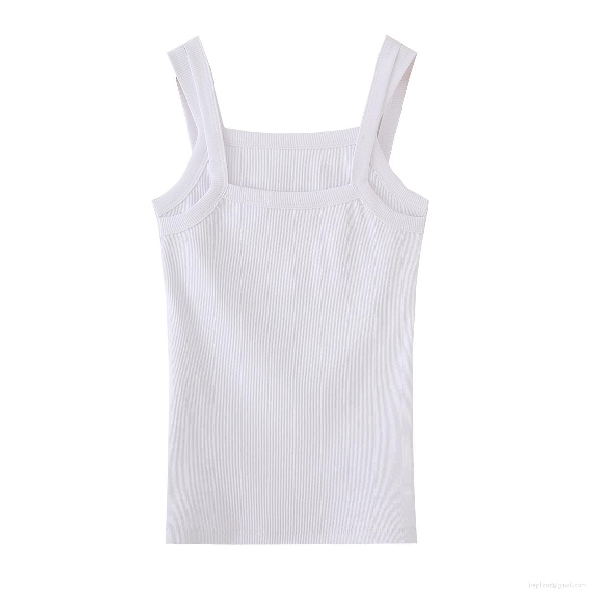 Women's Casual Cotton Ribbed Tank Top Square Neck Wide Shoulder Straps Solid White Summer Stretchy Sleeveless Camisole Vest Top For Women