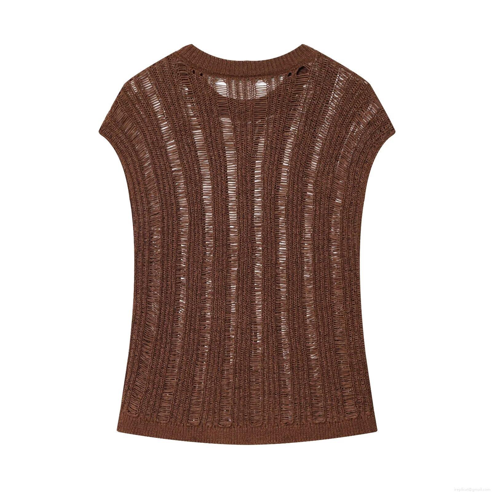 • Women's Casual Knit Tank Top Hollow Out Crochet Sleeveless Round Neck Slim Fit Summer Breathable Vest Top For Daily Vacation