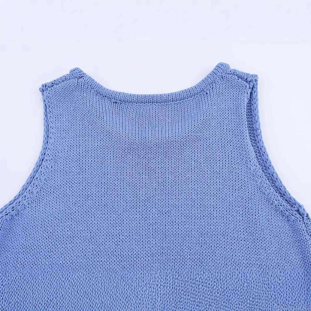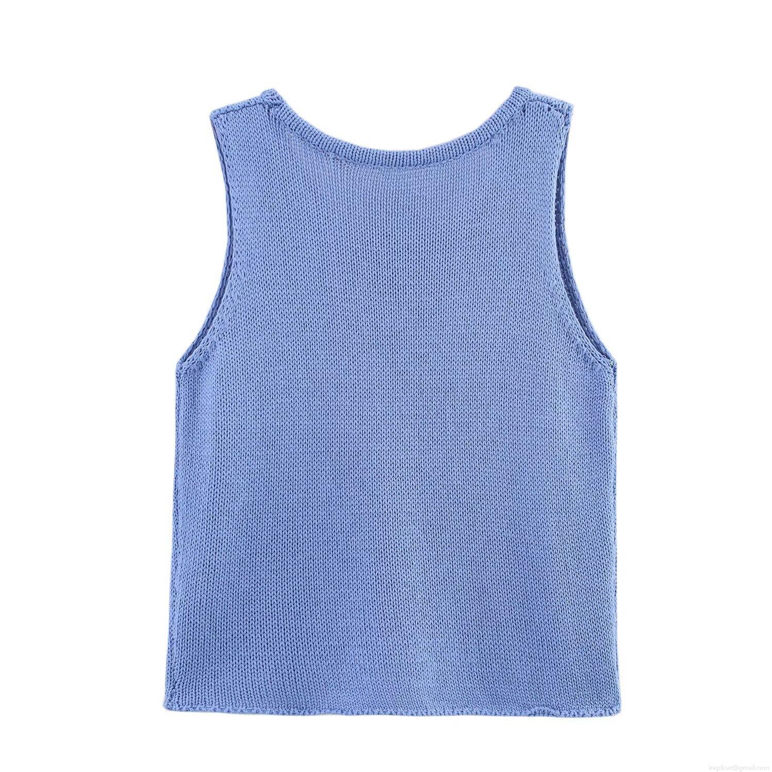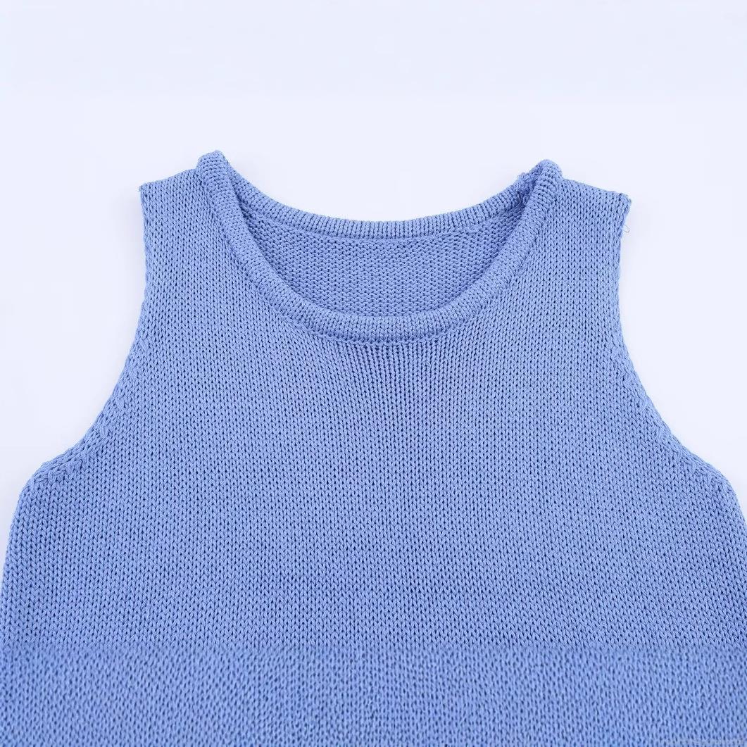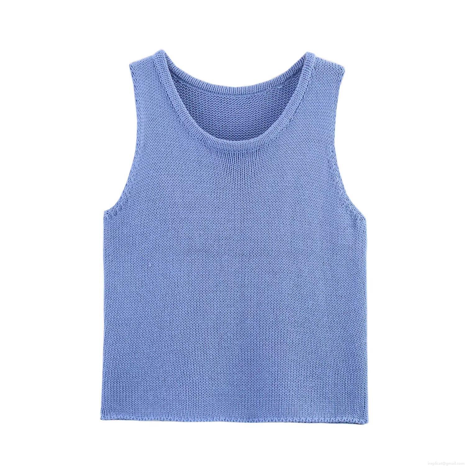 • Women's Casual Knit Tank Top Sleeveless Round Neck Solid Color Polyester Slim Fit Periwinkle Blue Sweater Vest for Women Spring Summer Daily Wear Chic Style