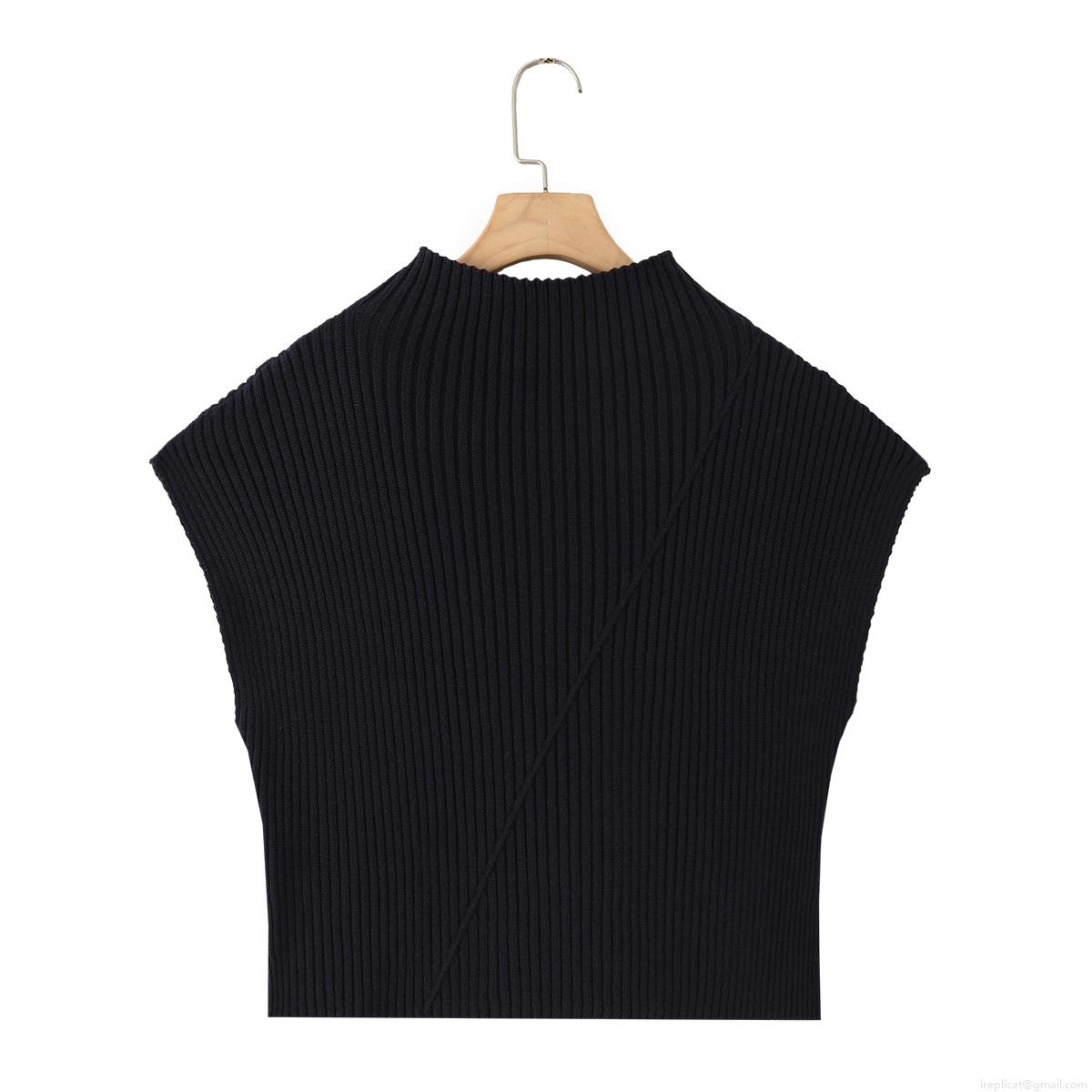 • Women's Casual Mock Neck Ribbed Knit Vest Cotton Acrylic Blend Sleeveless Slim Fit Tank Top Elegant Solid Color Sweater Vest For Daily Wear
