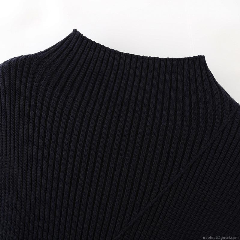 Solid Color, Off-shoulder, Ribbed Strip, Mock Neck, Diagonal Seam