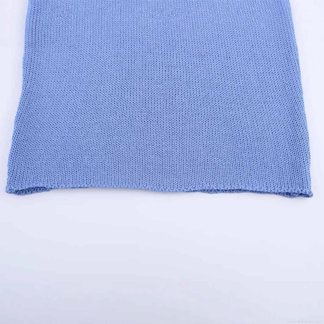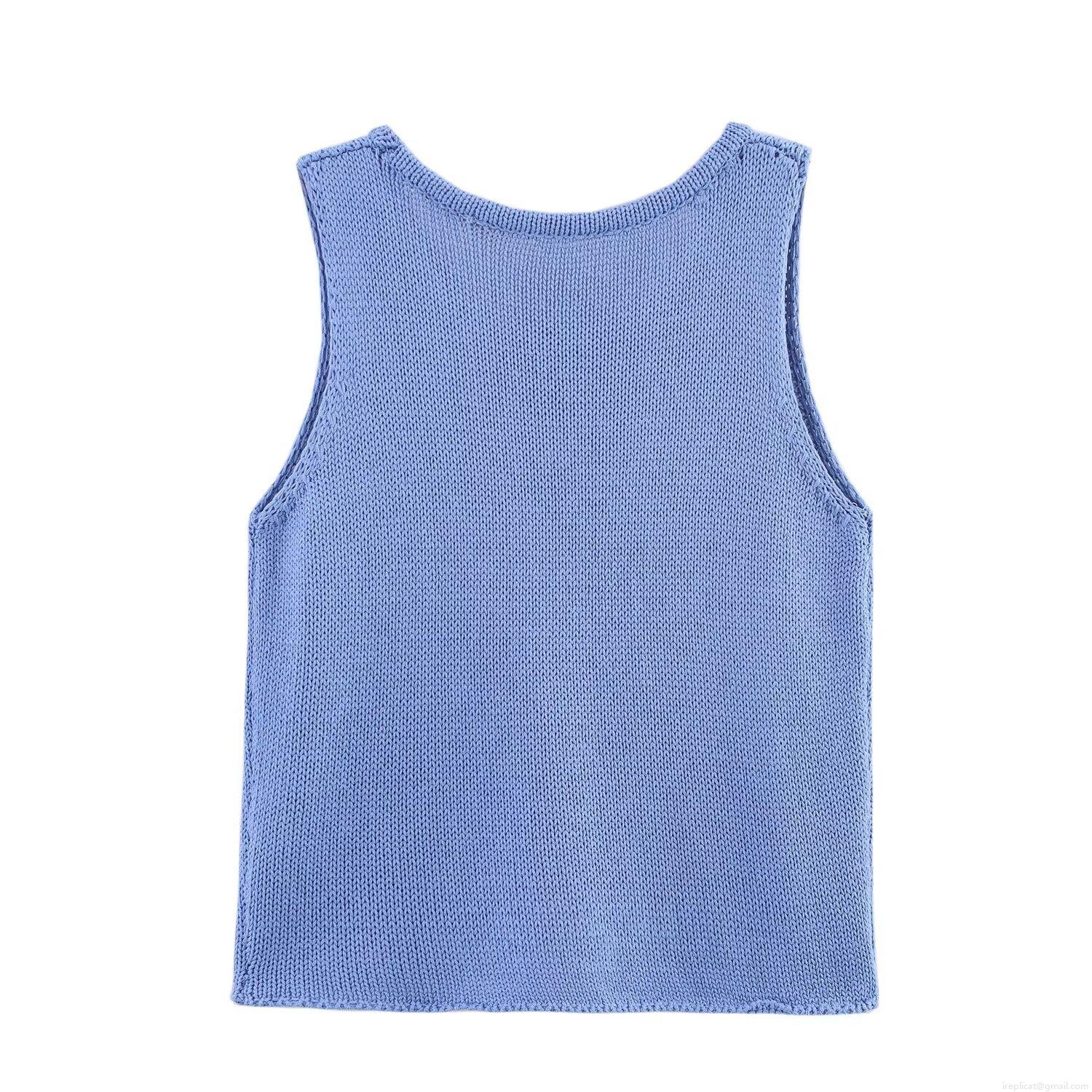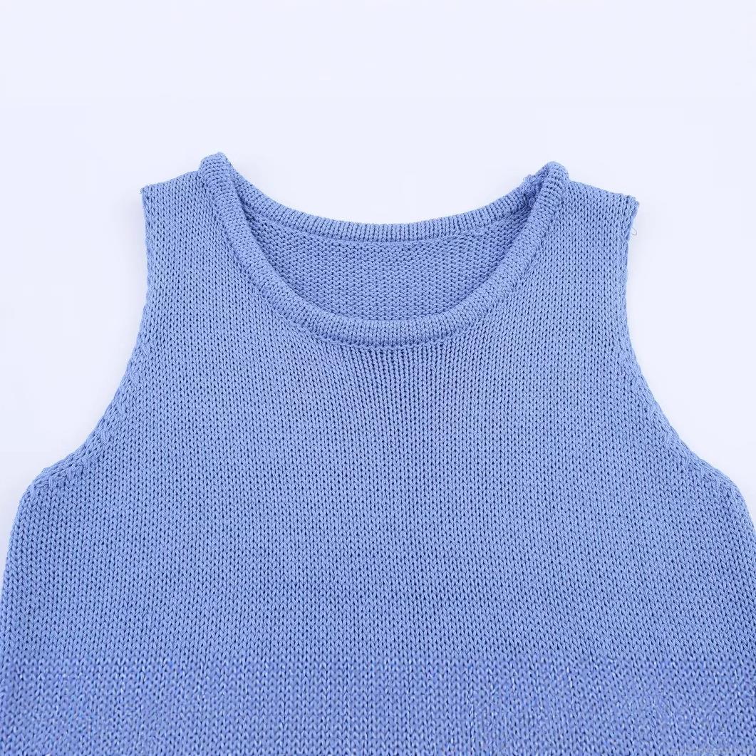 • Women's Casual Slim Fit Knit Vest Sleeveless Round Neck Solid Color Crop Top Pullover For Daily Wear Party Summer Blue Knitwear