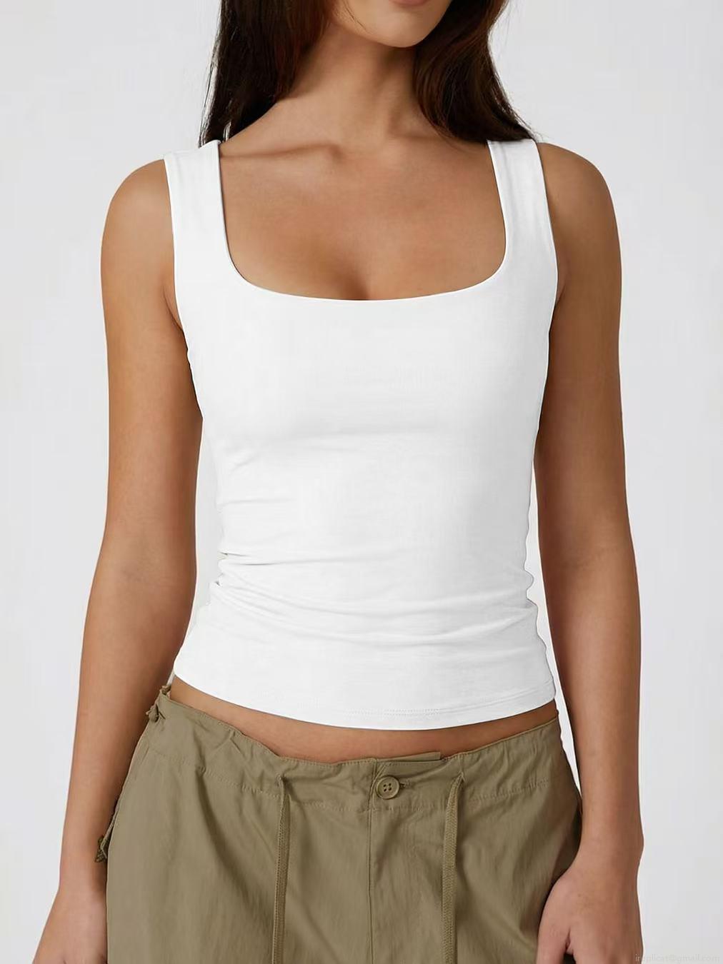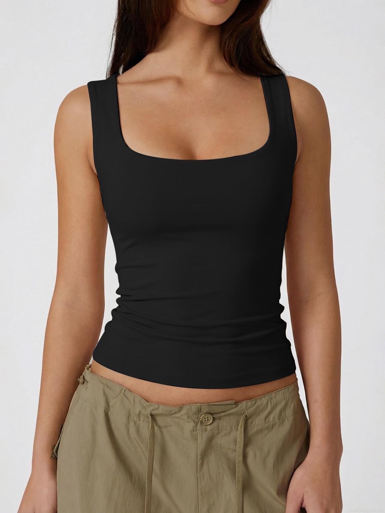 • Women's Casual Square Neck Sleeveless Tank Top Slim Fit Solid Color Polyester Spandex Ribbed Knit Basic Cami Vest For Women Summer Commute Daily Wear