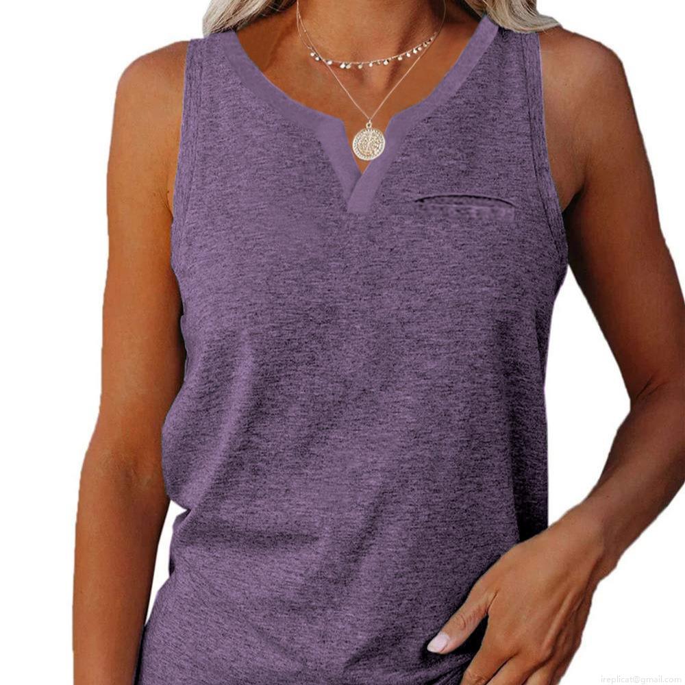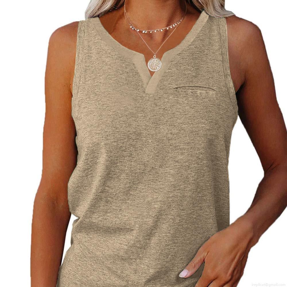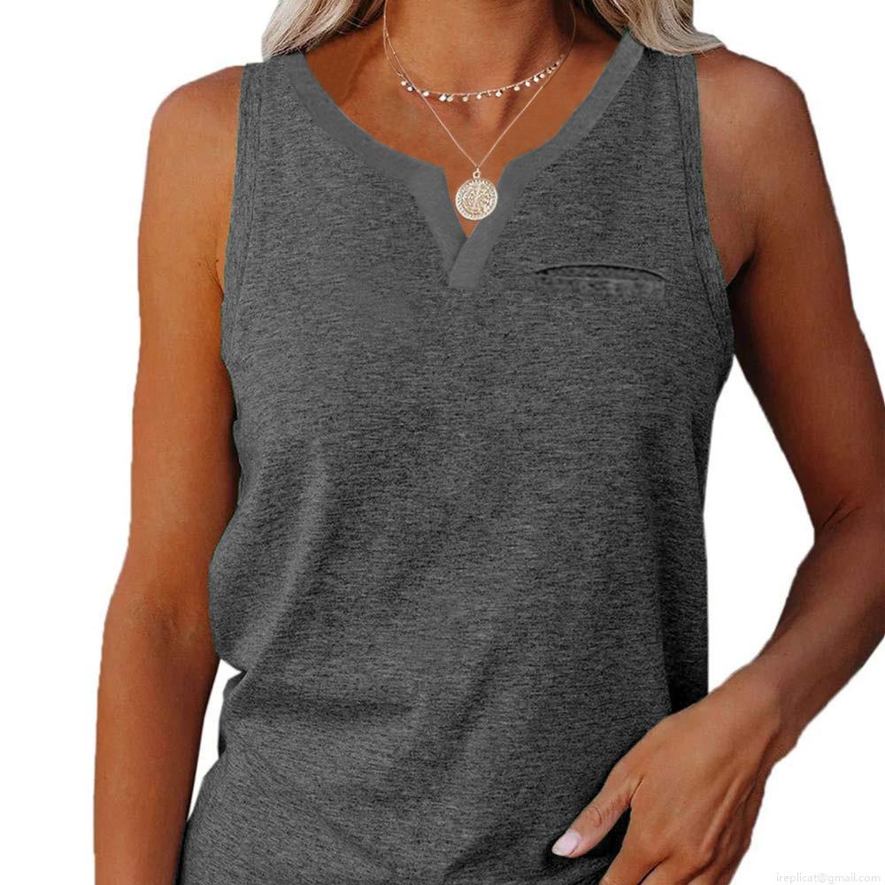 • Women's Casual V Neck Tank Top With Chest Pocket Loose Fit Sleeveless Summer Knit Polyester Spandex Basic Solid Color Shirt Plus Size Top For Women