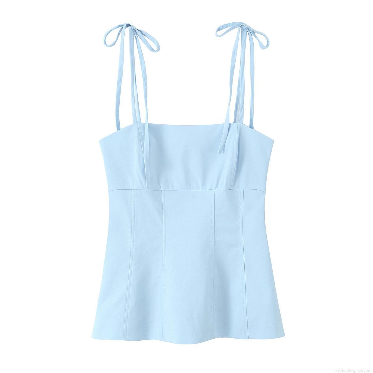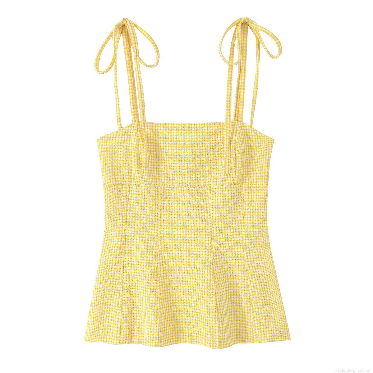 • Women's Chic Bow Tie Strap Cami Top Square Neck Slim Fit Woven Plaid Solid Color Cropped Tank Top For Summer Casual Vacation
