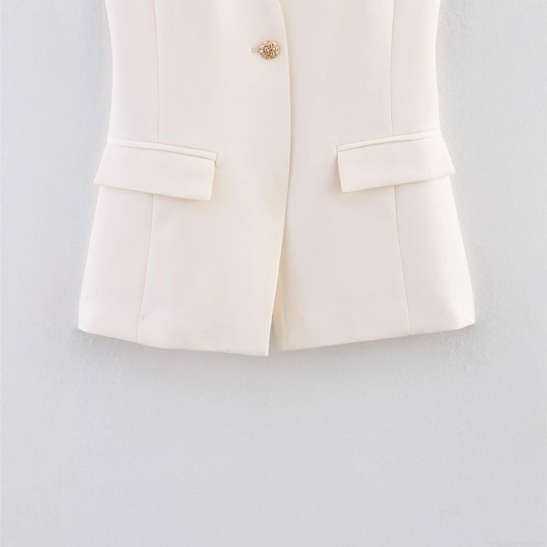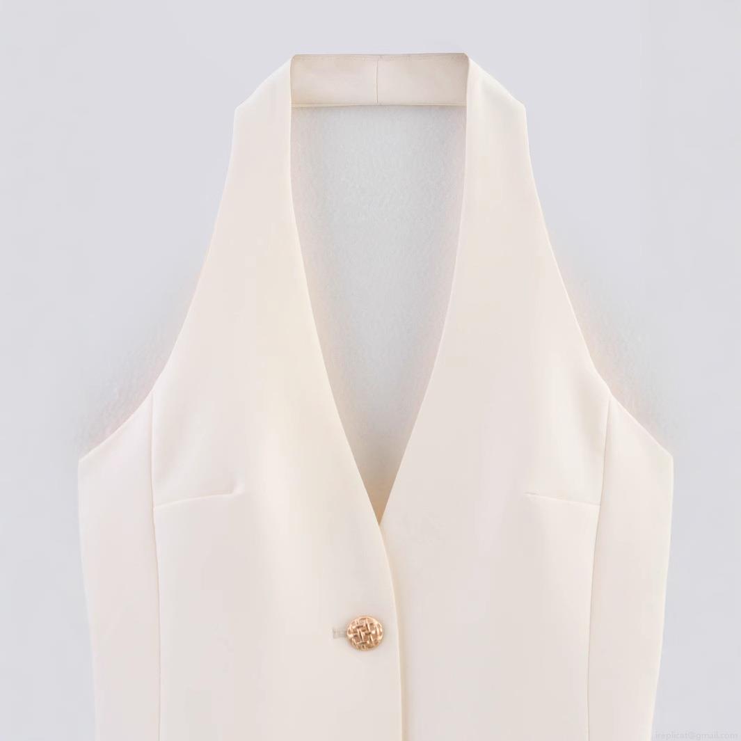 • Women's Chic Off-White Halter Neck Suit Vest Top Sexy Deep V-Neck Backless Sleeveless Slim Fit Cropped Blouse With Metal Button For Party Clubwear