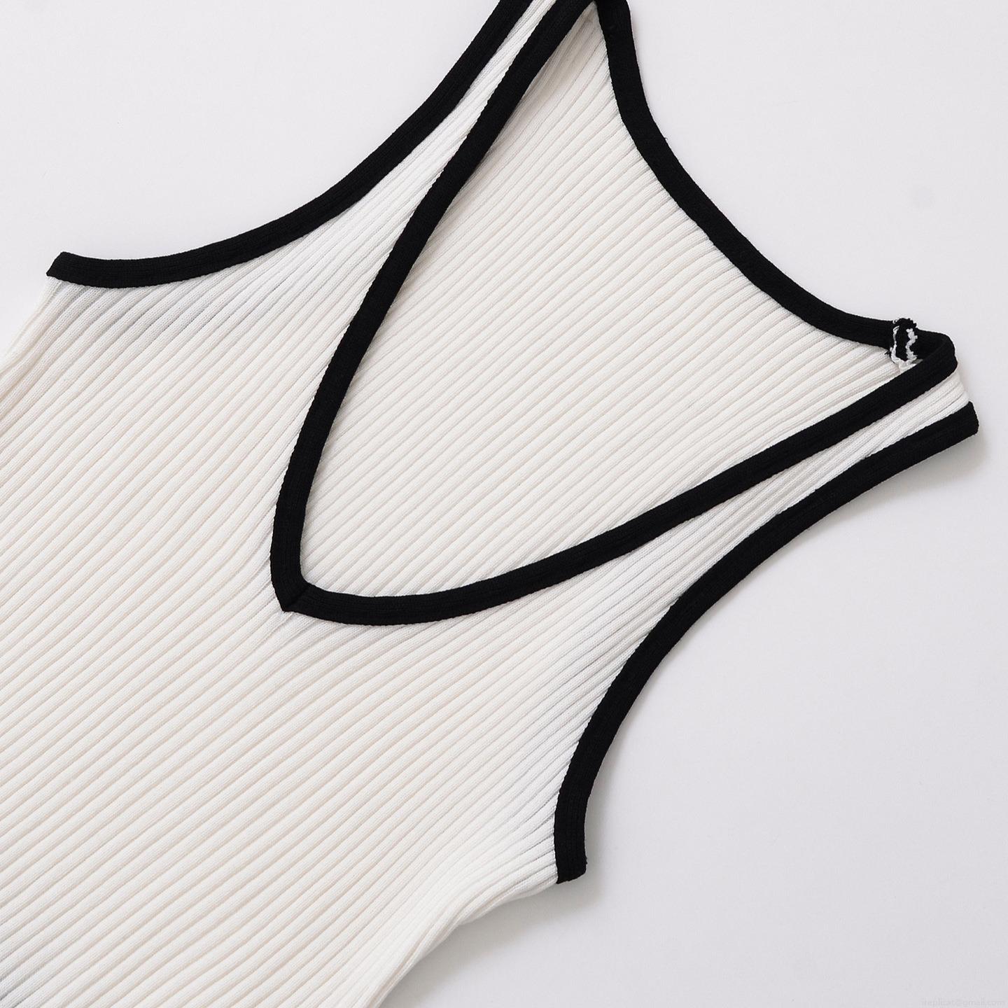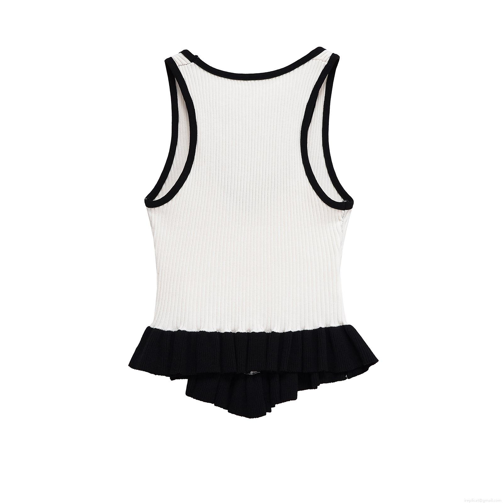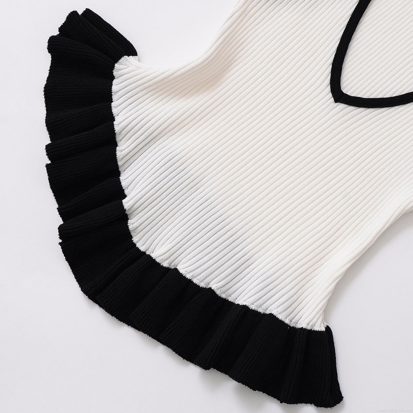 • Women's Contrast Color V-Neck Ribbed Knit Tank Top Sexy Ruffle Hem Sleeveless Slim Fit Camisole Casual Summer Streetwear Party Clubwear