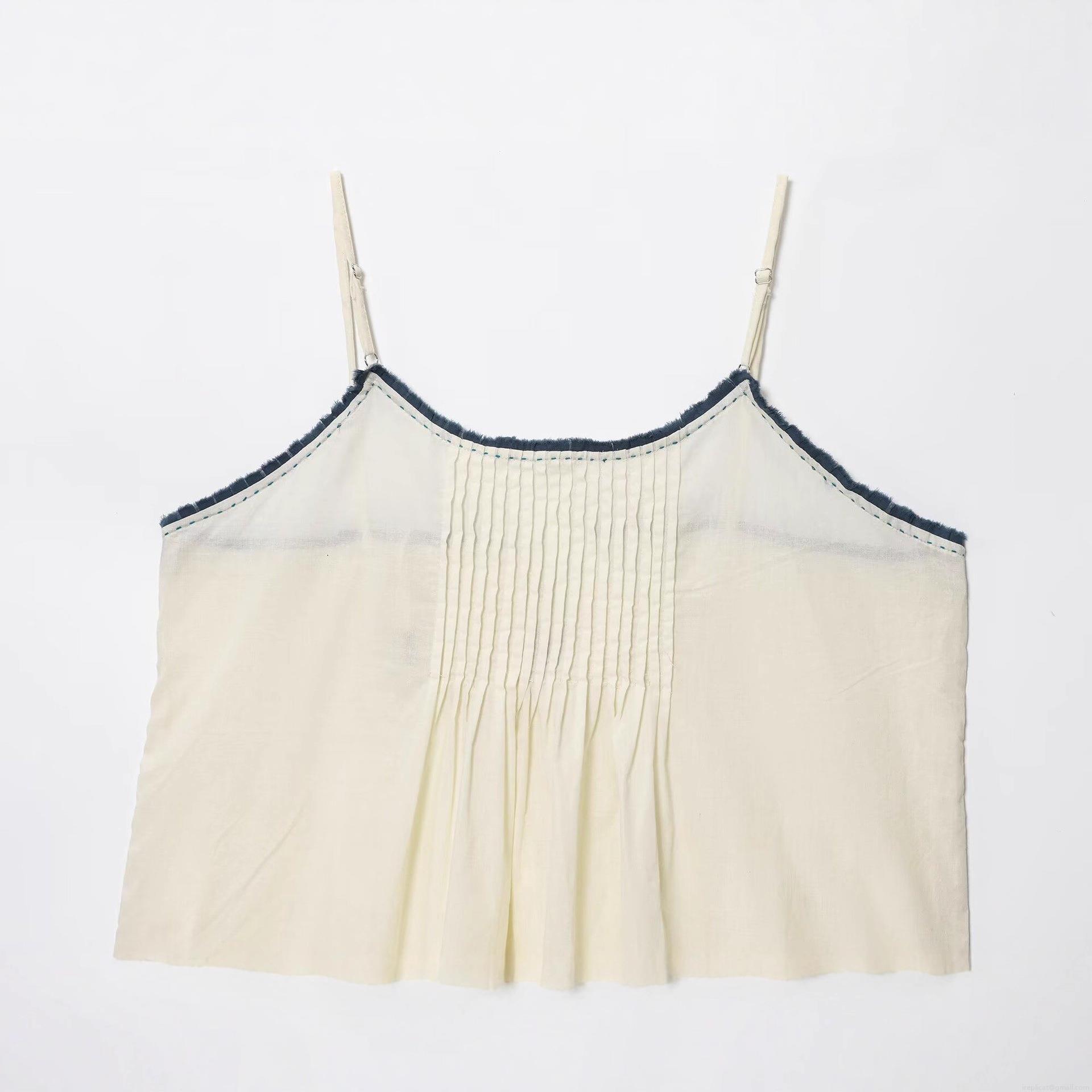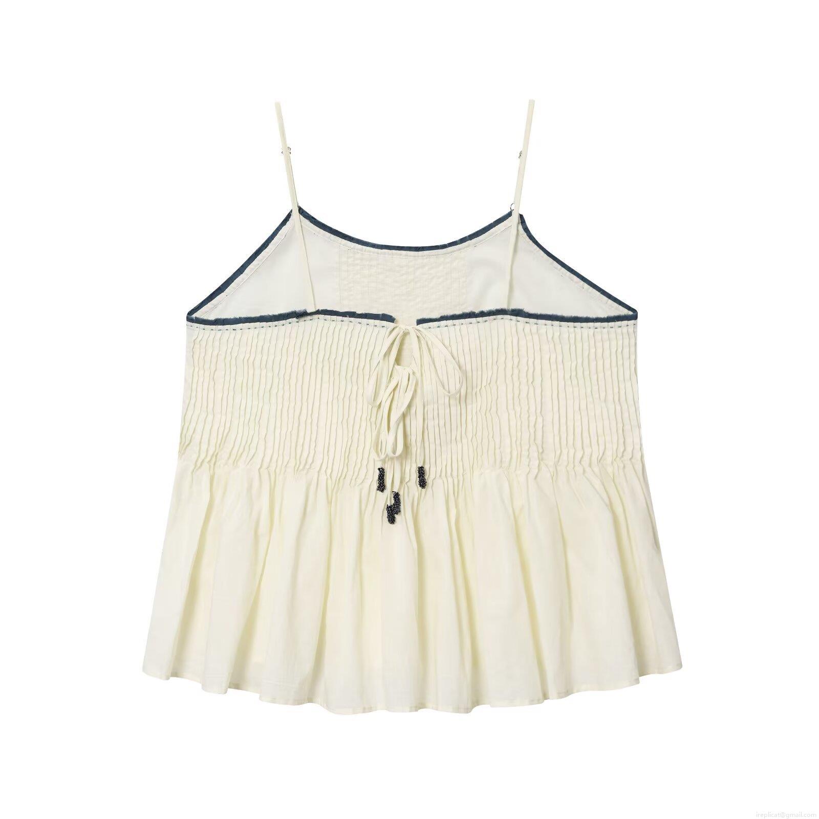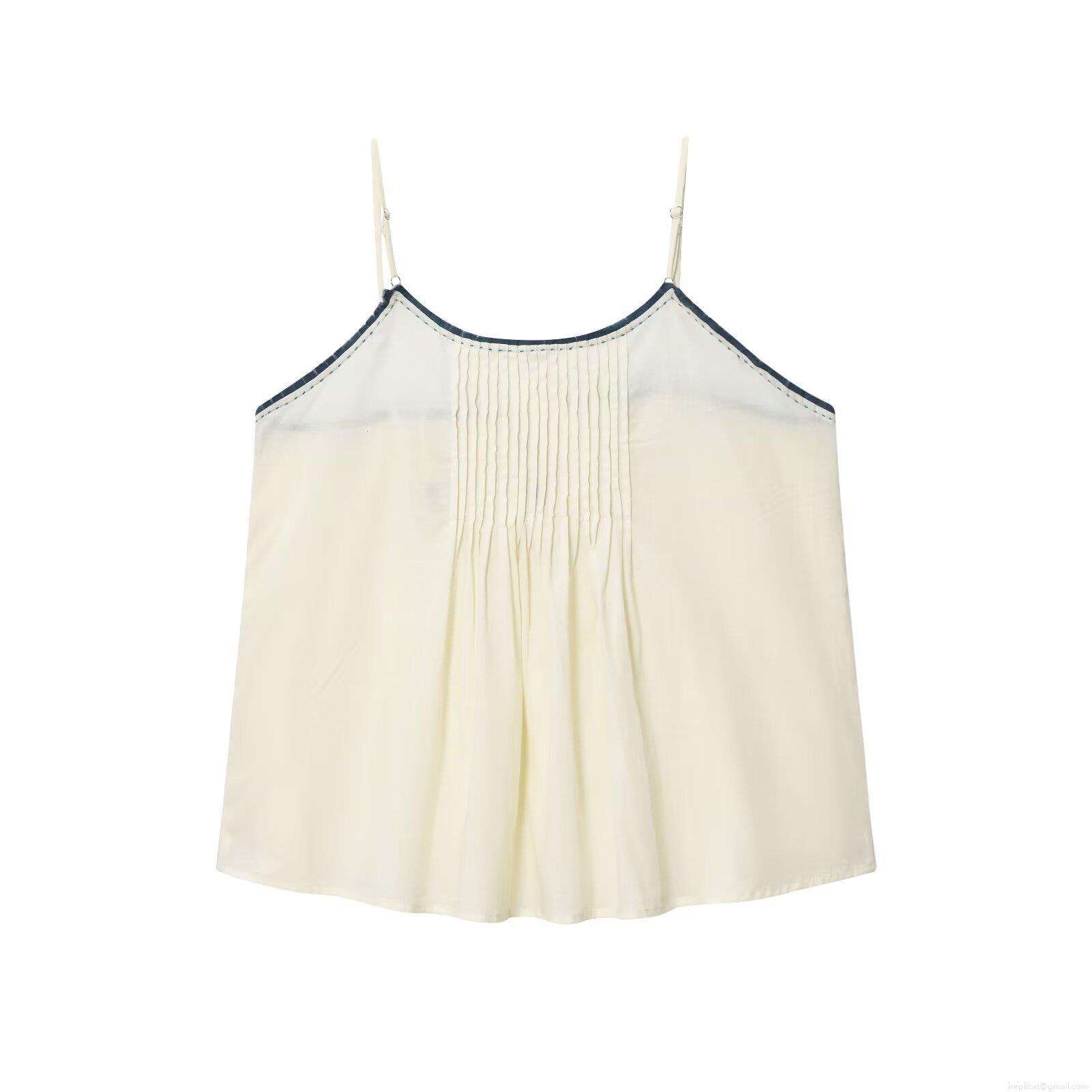 • Women's Contrast Trim Smocked Cami Top Spaghetti Strap Back Tie Pleated Loose Casual Sleeveless Summer Autumn Tank Top