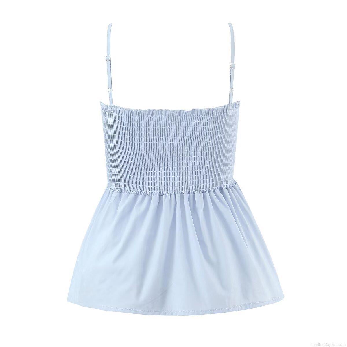 • Women's Cotton Camisole Tank Top With Sweet Bow Tie Smocking Backless Ruffle Hem Sleeveless Summer Top For Beach Vacation Party Streetwear