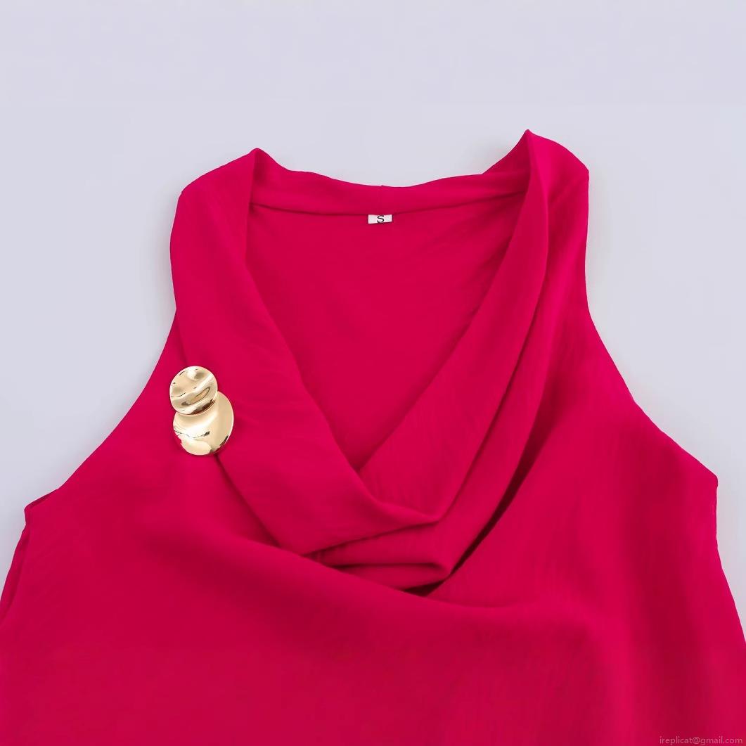 • Women's Cowl Neck Sleeveless Tank Top Elegant Silk Luster Solid Color Vest With Gold Cicada Brooch Party Dating Slim Fit Polyester Top