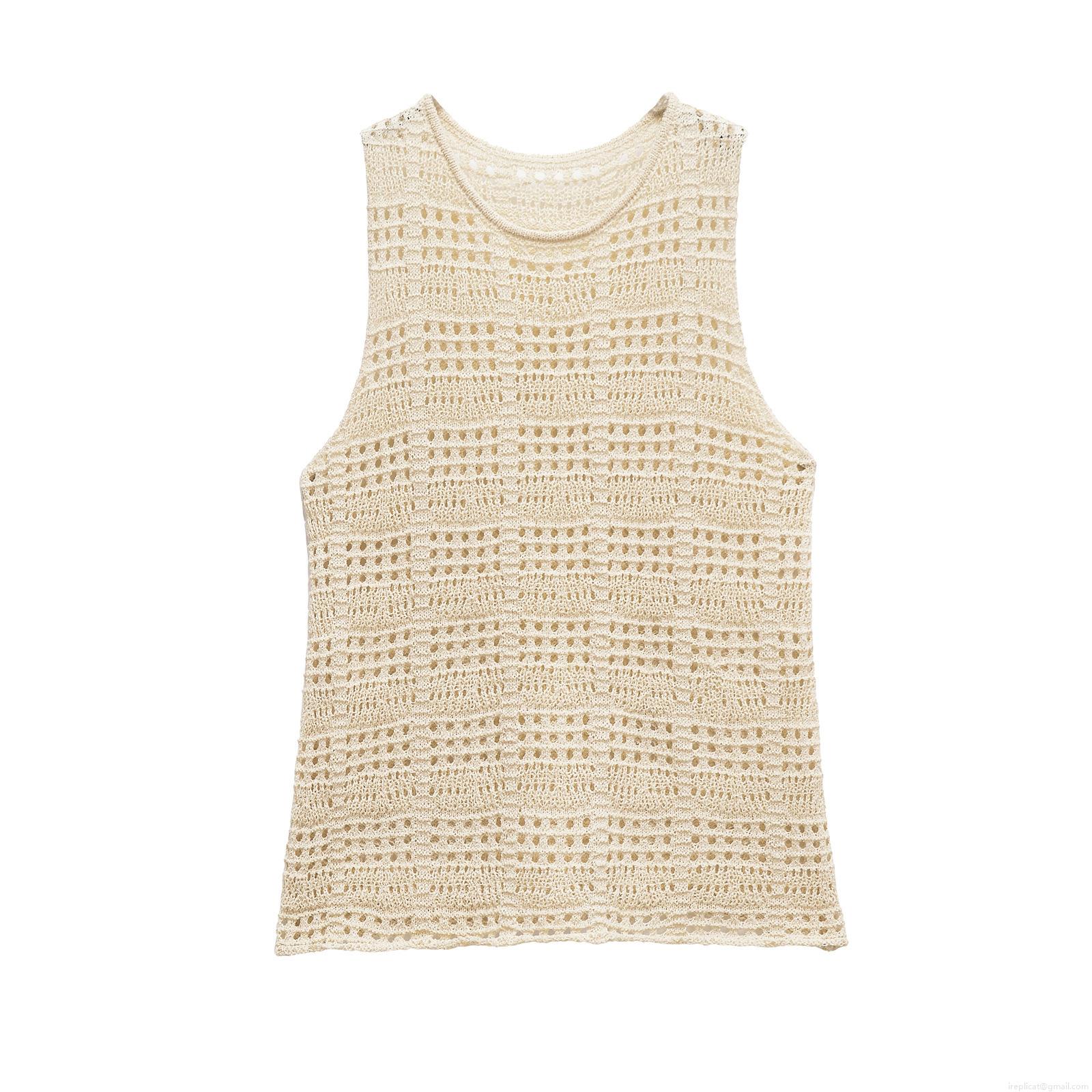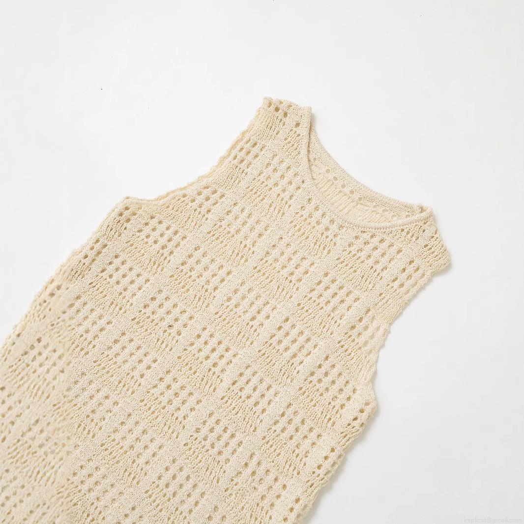 • Women's Crochet Hollow Knitted Tank Top Cotton Blend Sleeveless Round Neck Vest Slim Fit Solid Color Casual Summer Beach Top For Women
