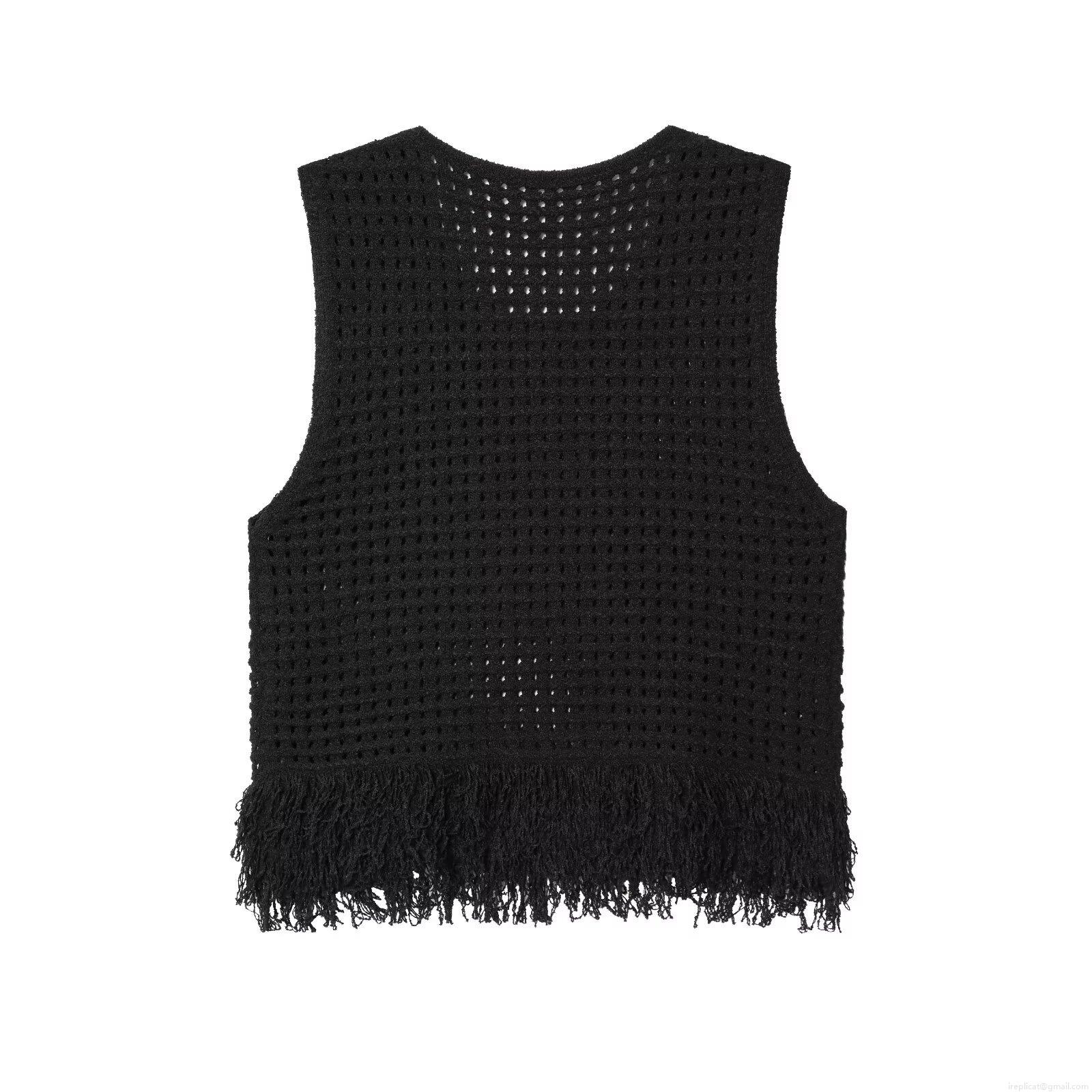 • Women's Crochet Knitted Tank Top Sleeveless Hollow Out Plaid Tassel Hem Bohemian Summer Beach Vest Top Fashion Casual Knitted Camisole for Ladies