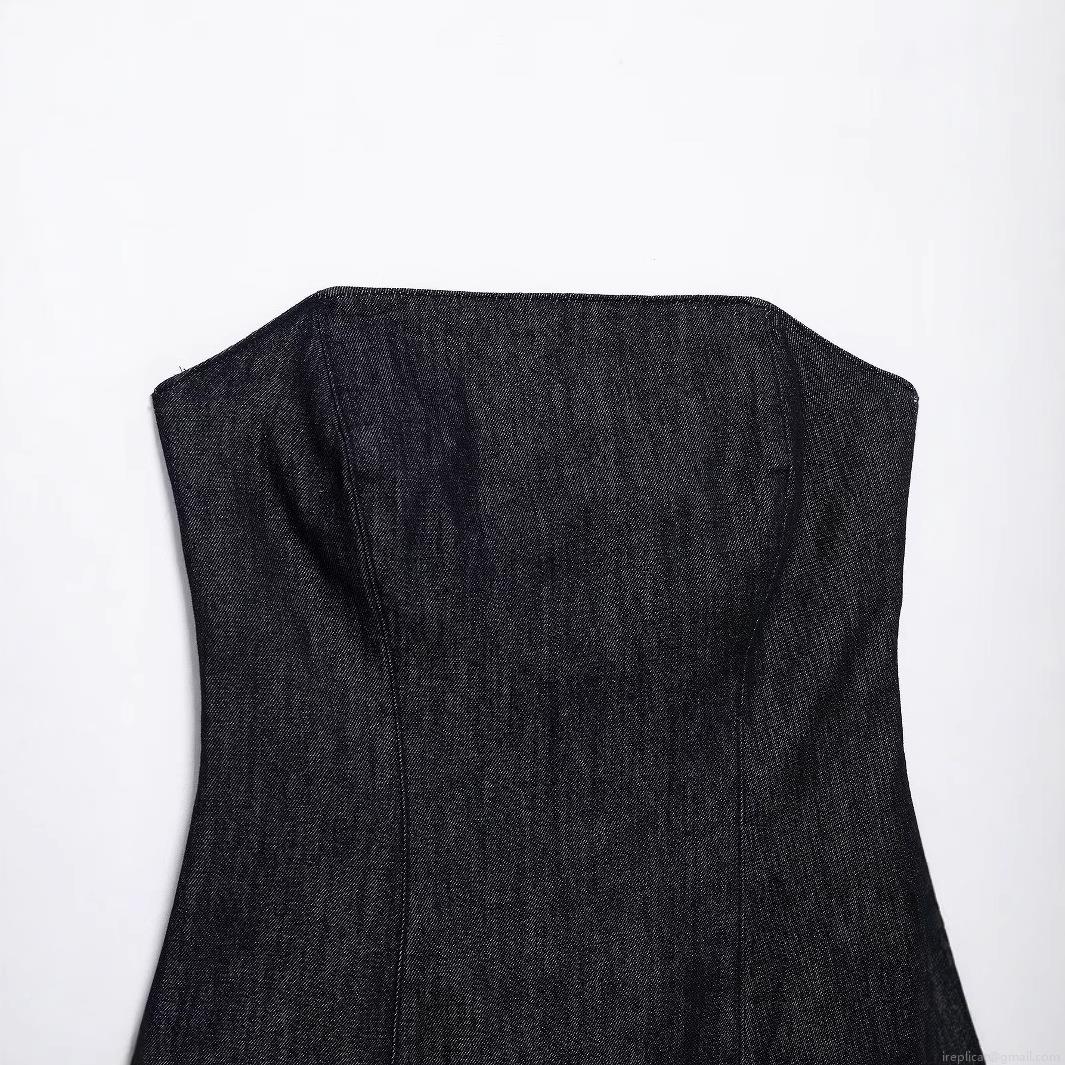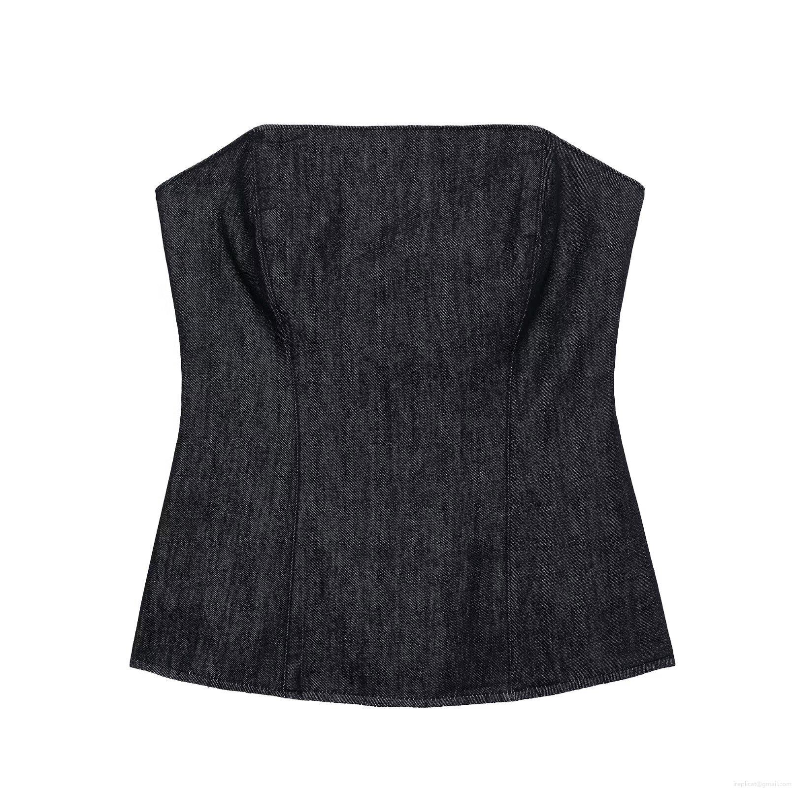 • Women's Denim Tube Top Sexy Slim Fit Strapless Bandeau Top For Summer Party Streetwear Solid Black Polyester Blend Sleeveless Crop Top Vest