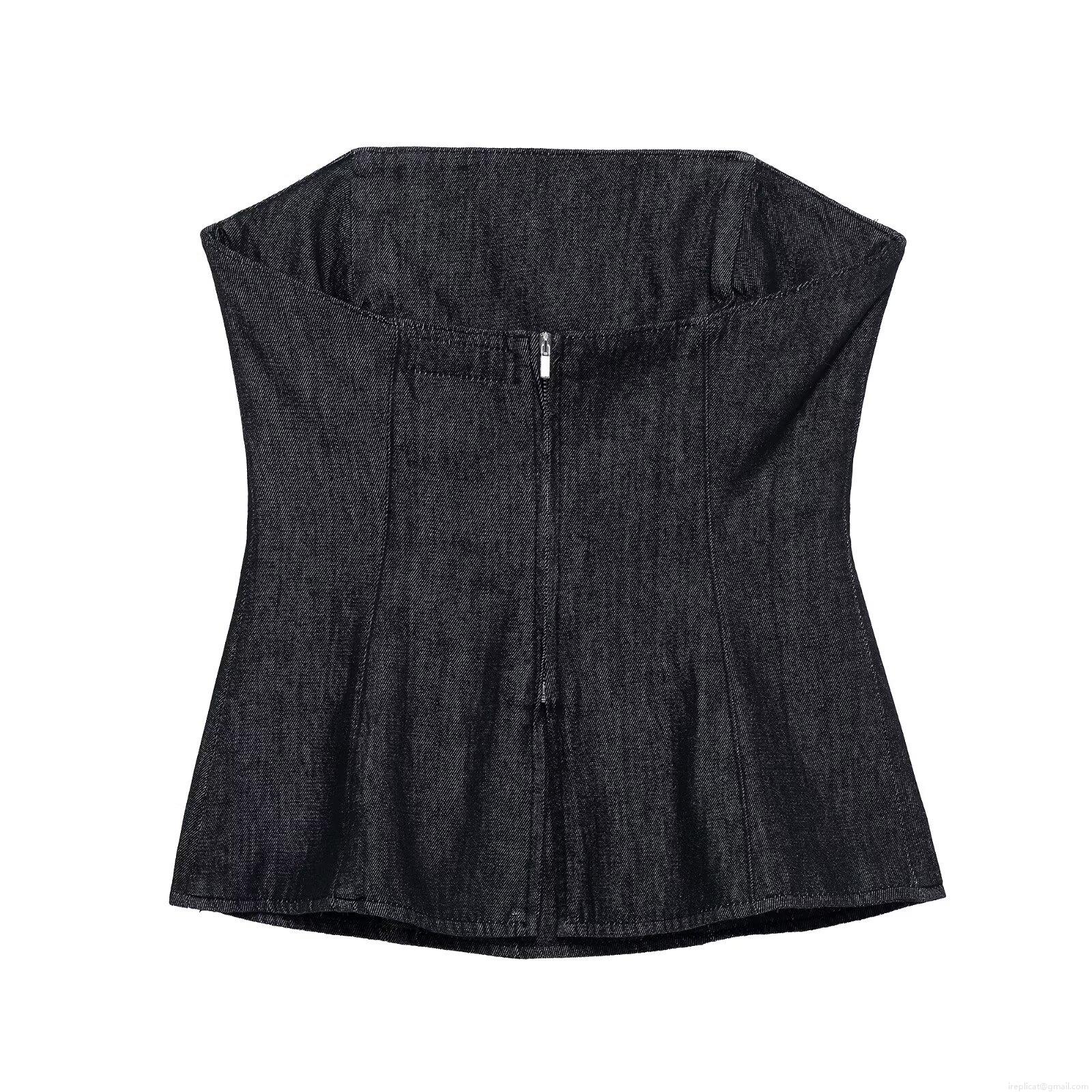 Women's Denim Tube Top Sexy Slim Fit Strapless Bandeau Top For Summer Party Streetwear Solid Black Polyester Blend Sleeveless Crop Top Vest