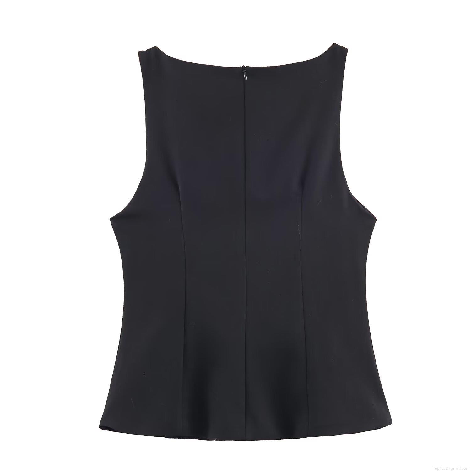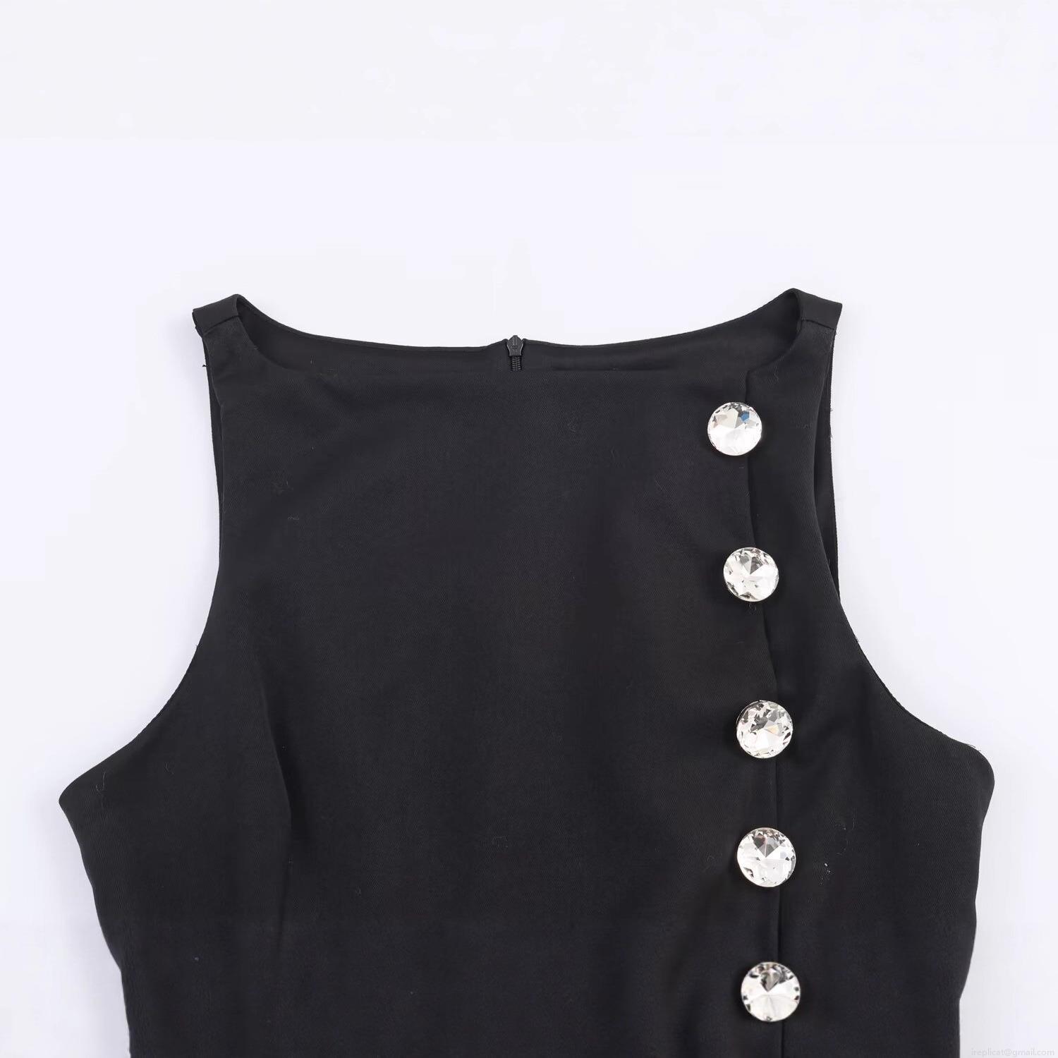 • Women's Elegant Black Sleeveless Tank Top With Jewel Buttons Rhinestone Decoration Chic Bodycon Vest For Party Evening Party Office Lady Fashion