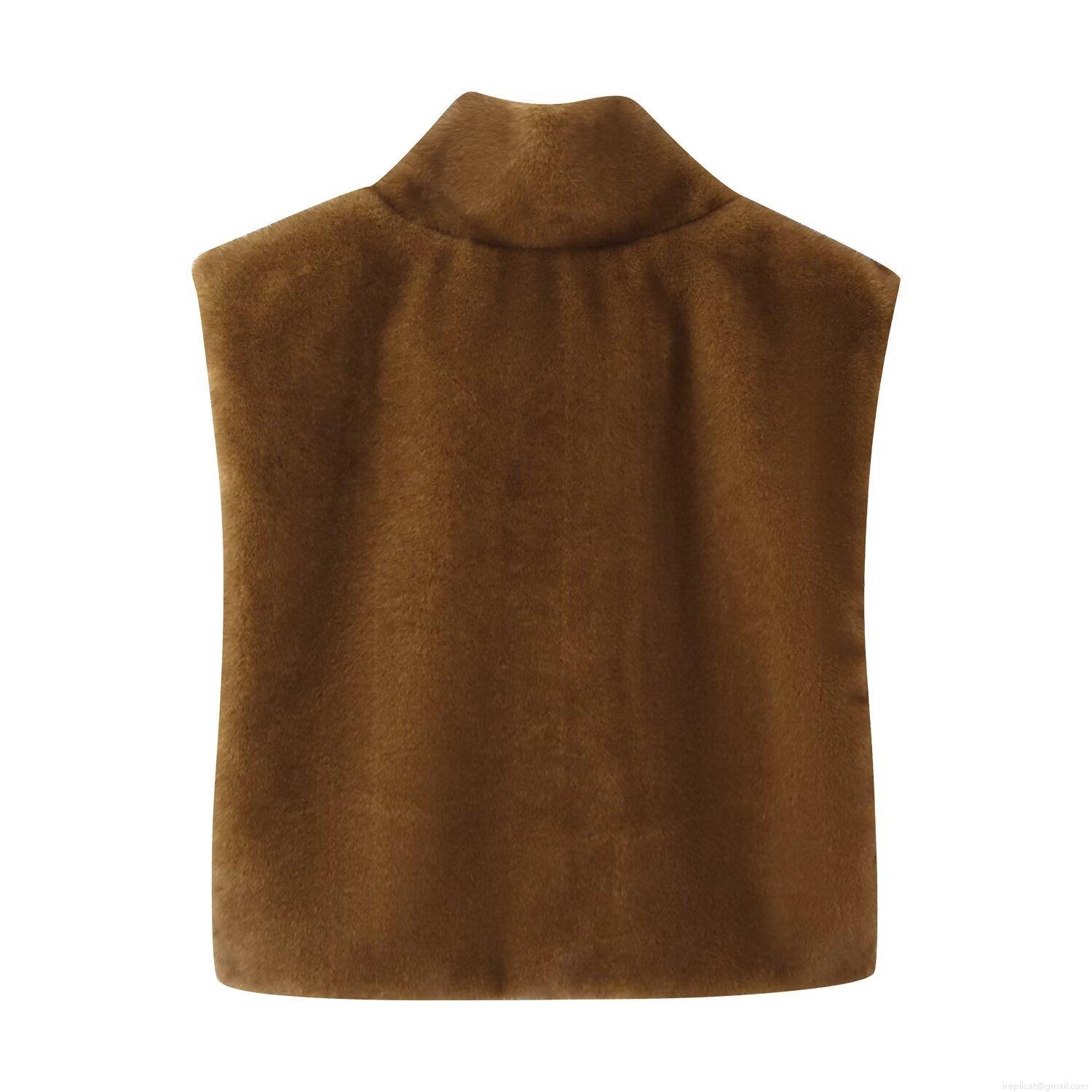 • Women's Elegant Faux Fur Sleeveless Vest High Neck Thermal Bib Collar Solid Color Polyester Winter Warm Cape For Women Casual Soft Commuting Accessory
