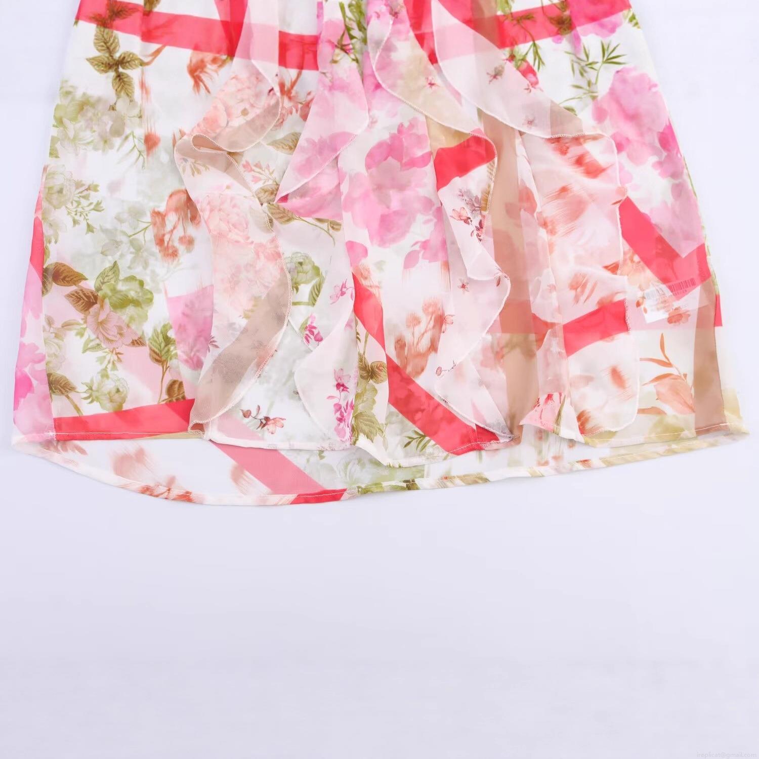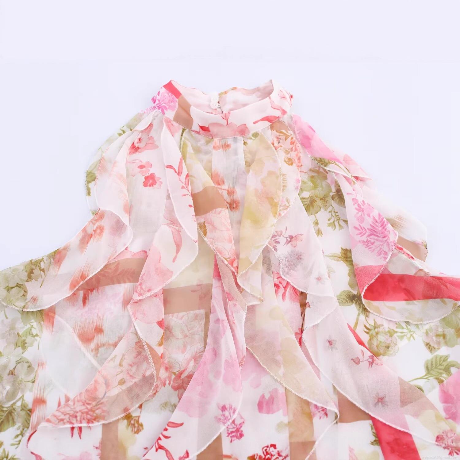 Floral Pattern, Pleats, Ruffles, Plants And Flowers, Printing, Neckband, Patchwork Print, Layered Decoration