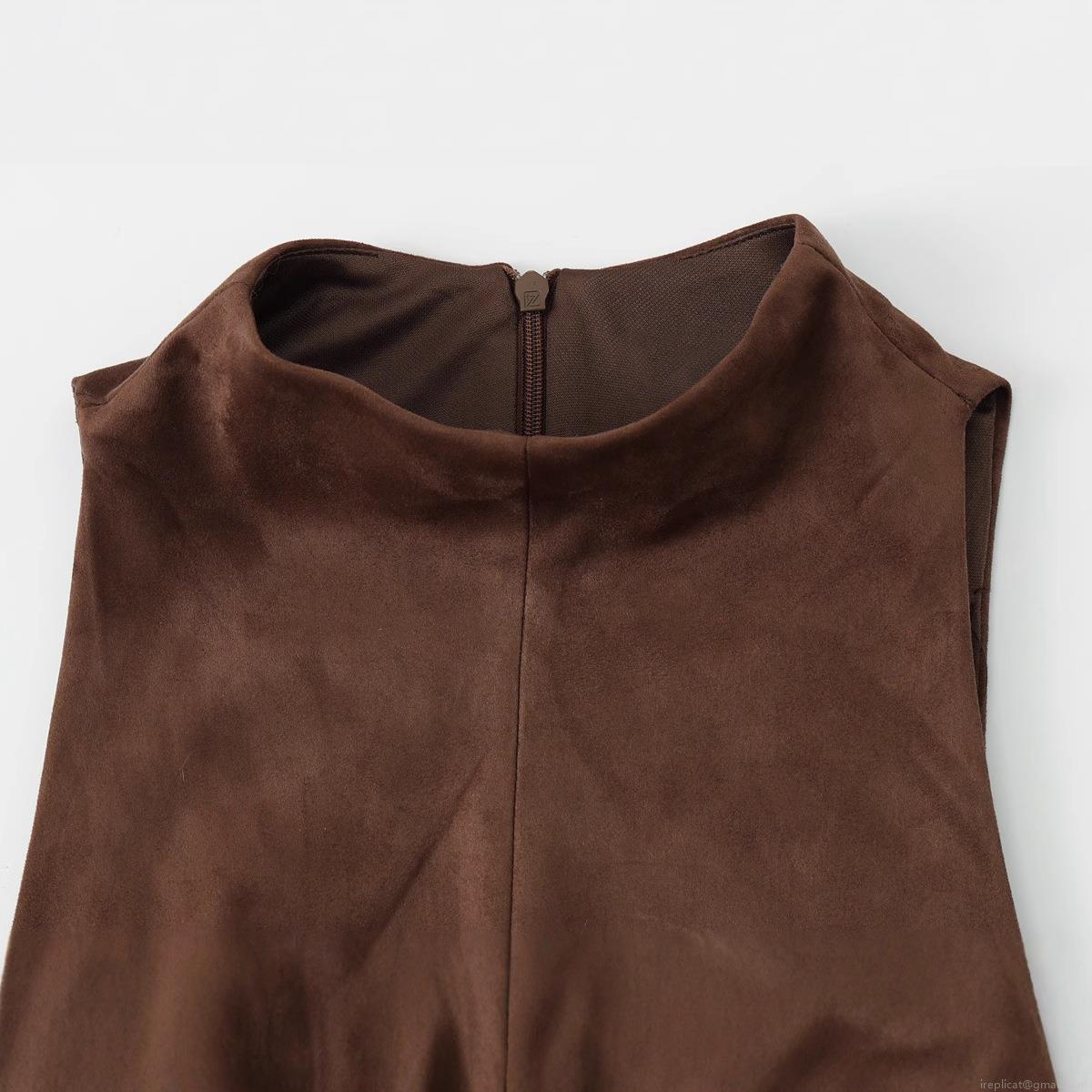 Women's Elegant High Neck Sleeveless Faux Suede Top Solid Color Slim Fit Back Zipper Tank Top For Party Clubwear Night Out