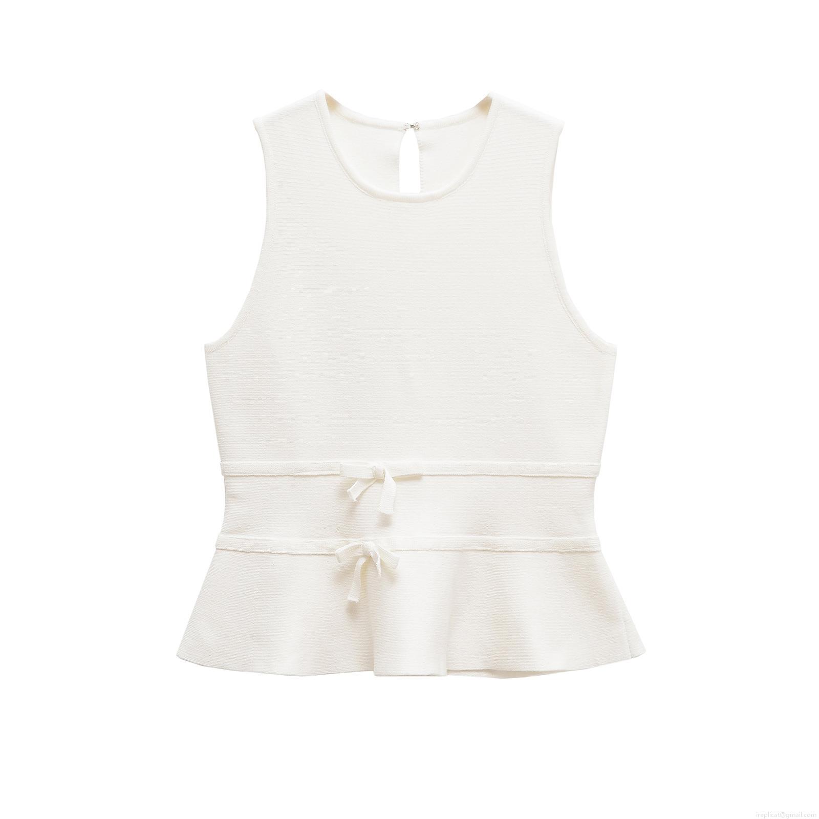 • Women's Elegant Knit Sleeveless Top With Peplum Hem And Bow Detail Round Neck Polyester Knit Vest For Dating Summer Fashion