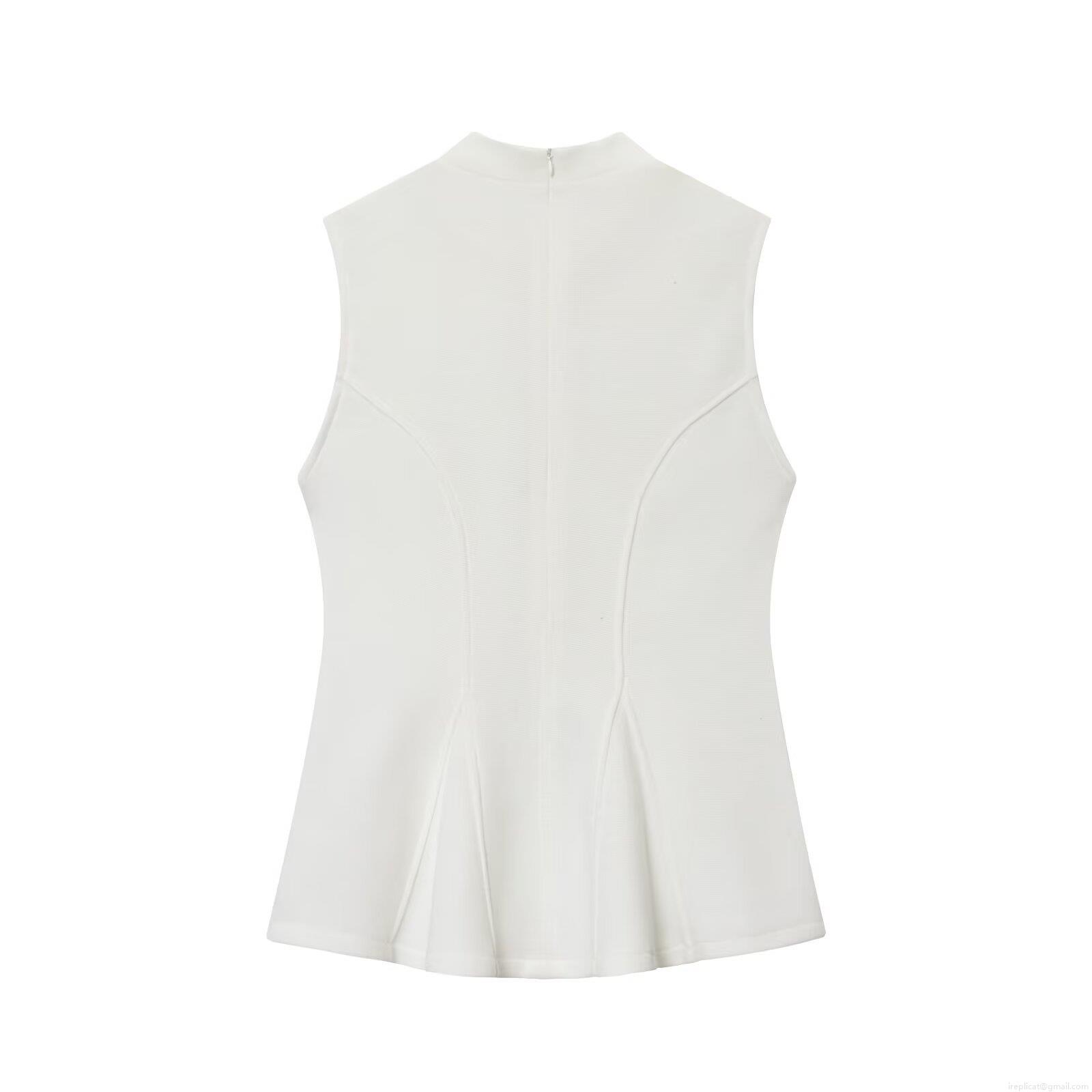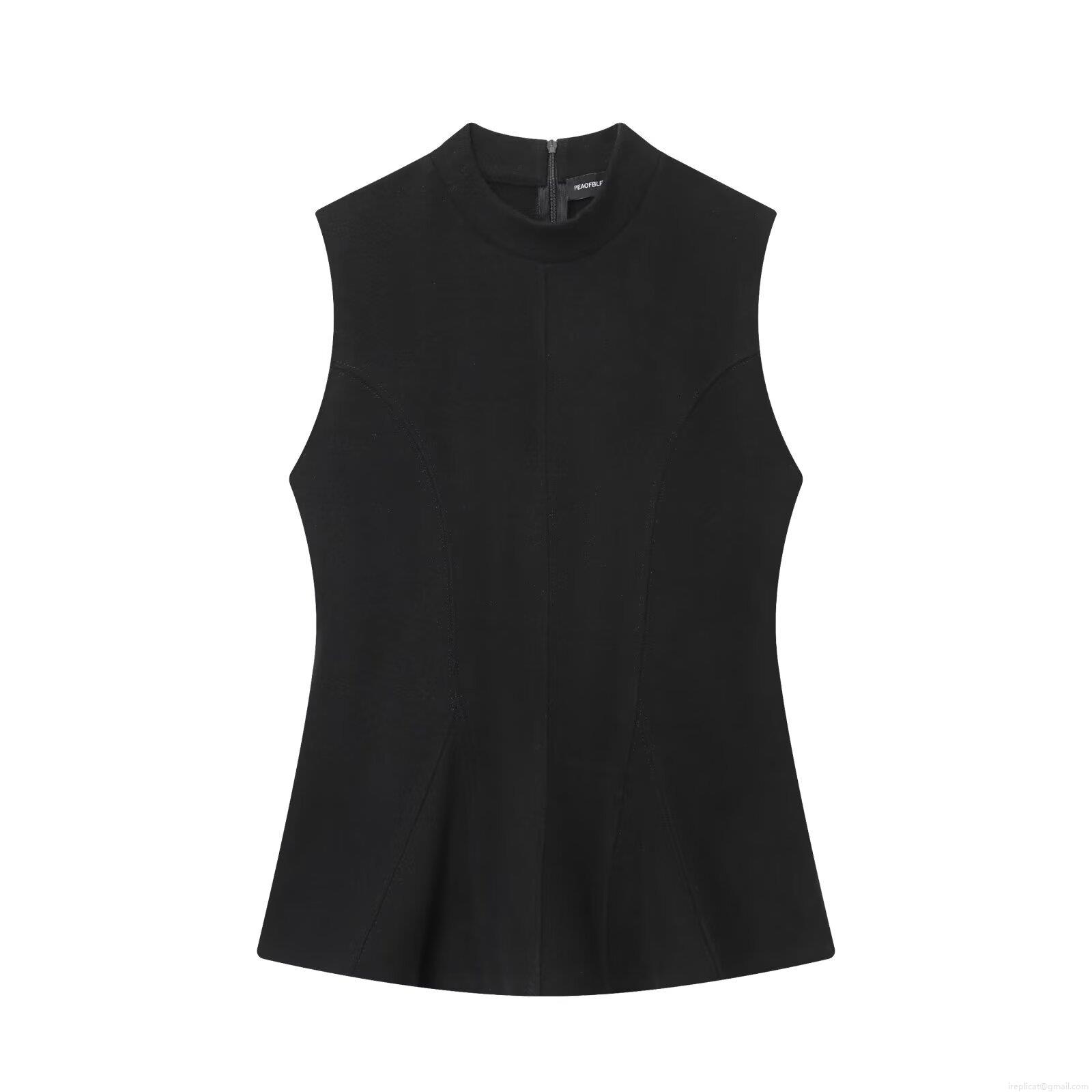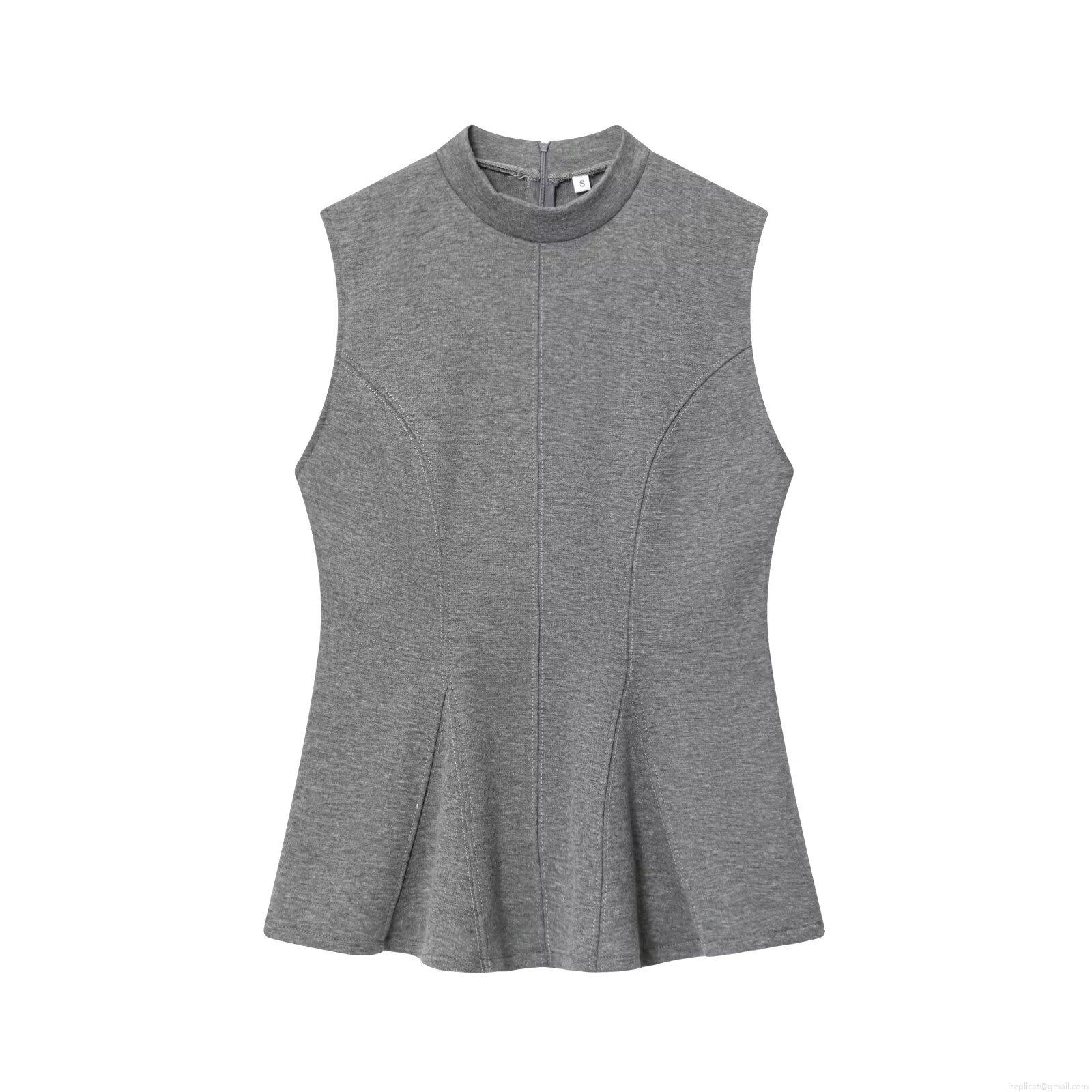 • Women's Elegant Knitted Mock Neck Peplum Top Sleeveless Slim Fit Back Zipper Waist Ruffle Shirt For Party Clubwear Daily Casual Blouse Black Grey White