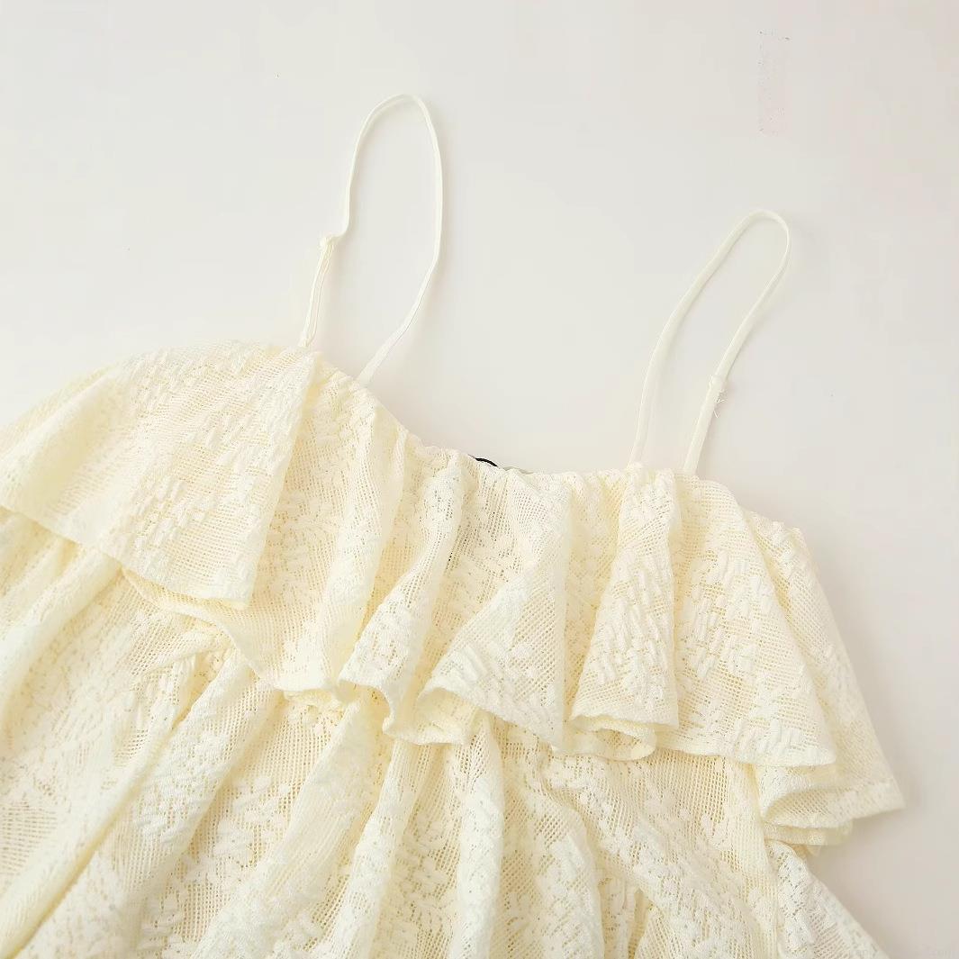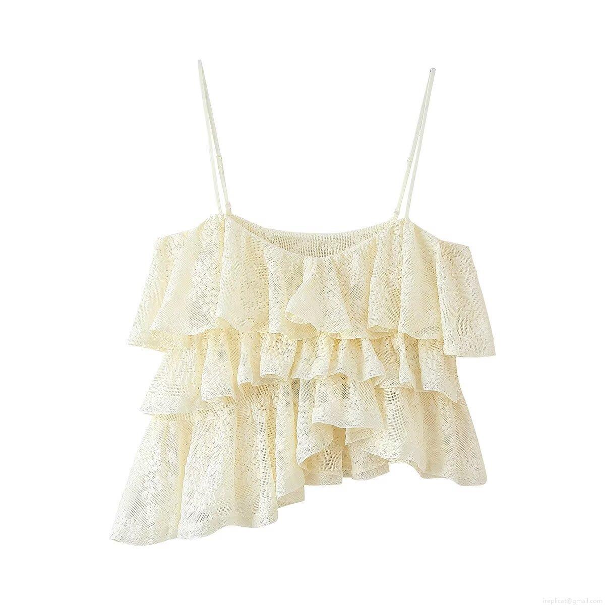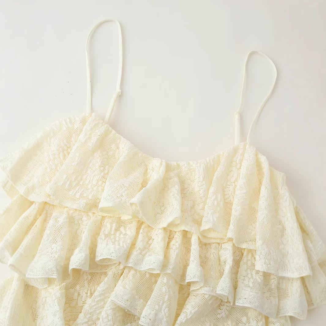 • Women's Elegant Lace Camisole Tank Top Multi Layered Ruffle Tiered Irregular Hem Sleeveless Strappy Crop Top For Summer Party Dating Off-white
